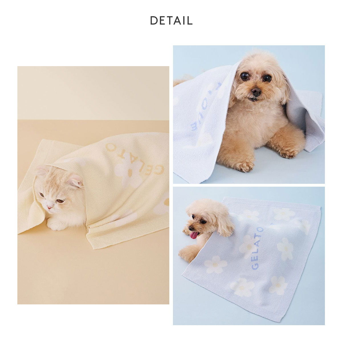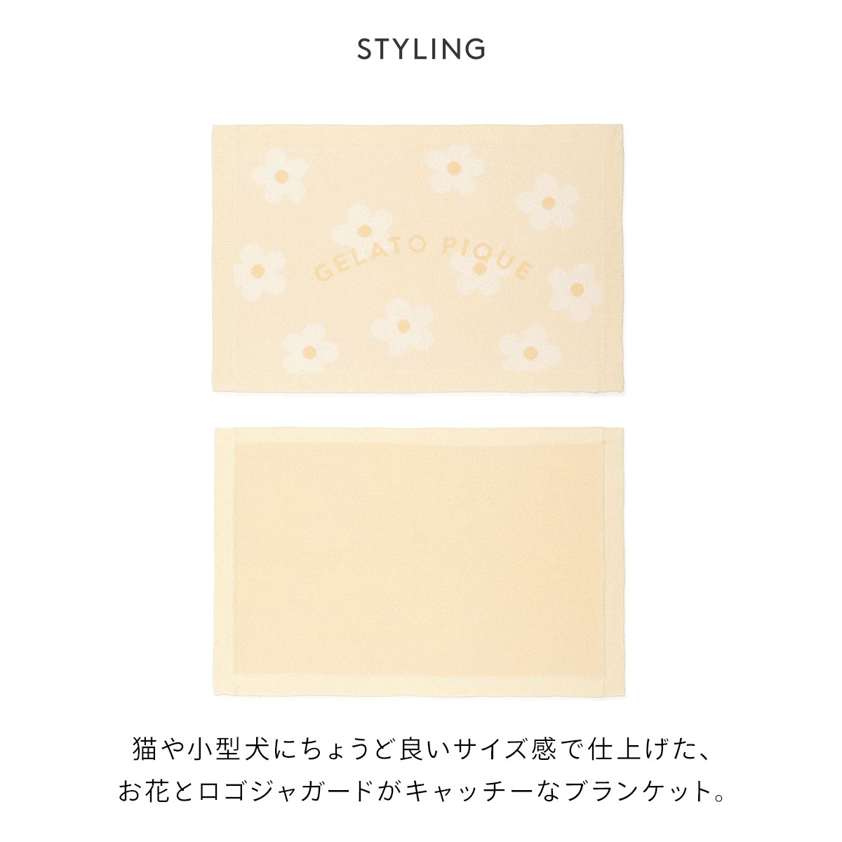 猫や小型犬にちょうどいいサイズ感で仕上げた、お花とロゴジャガードがキャッチーなブランケットです。