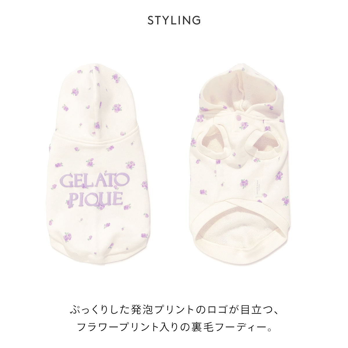 ジェラートピケ CAT&DOG フラワー柄裏毛フーディー ジェラピケ ペット gelato pique