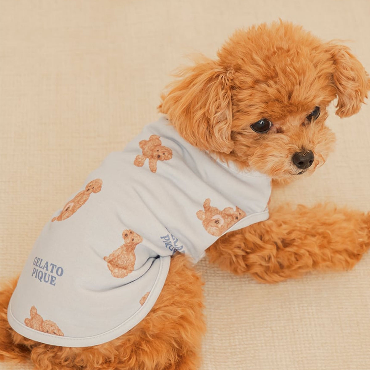 ジェラートピケ★寝そべるドッグ柄が可愛いペット用プルオーバー