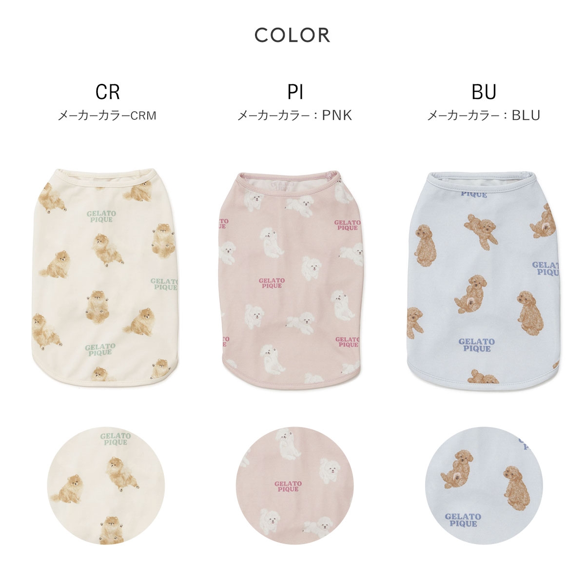 カラーCR-クリーム、PI-ピンク、BU-ブルー
