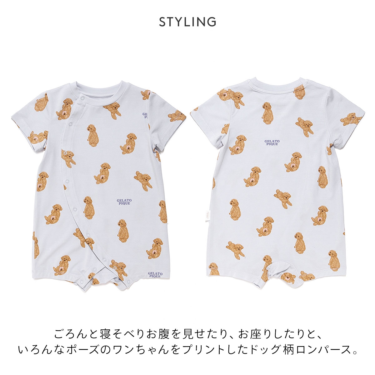 ジェラートピケ★いろんなポーズのドッグ柄に癒されるロンパース
