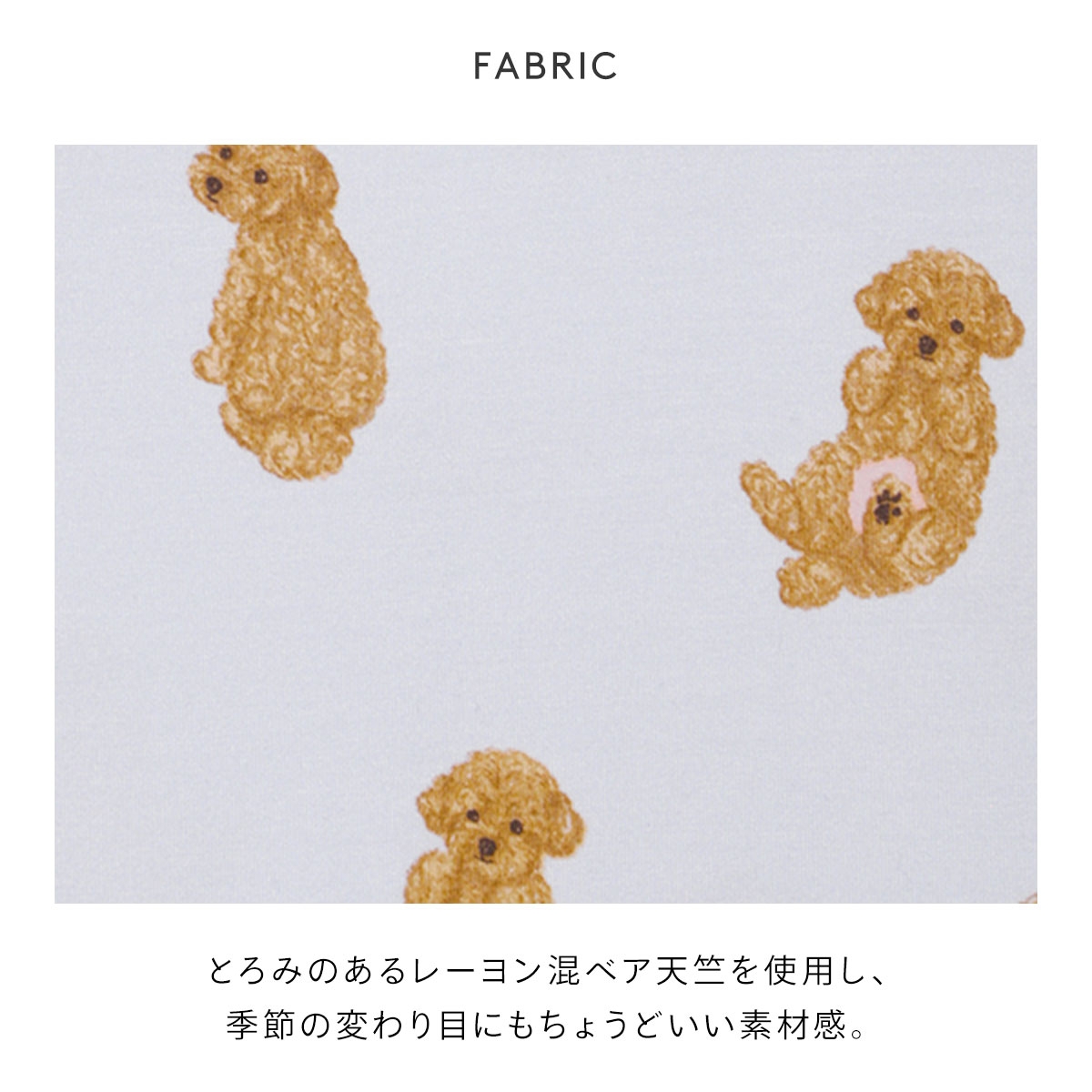 とろみのあるレーヨン混ベア天竺を使用した、季節の変わり目にもちょうどいい1枚です。