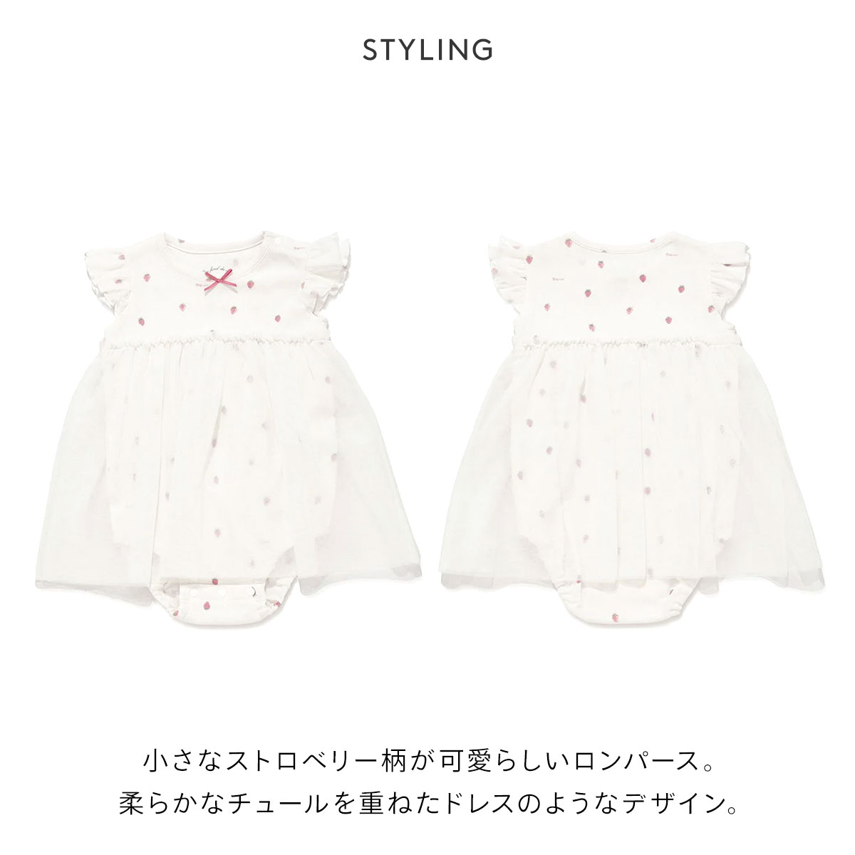 ジェラートピケ★記念日やギフトに最適な苺柄ベビーロンパース