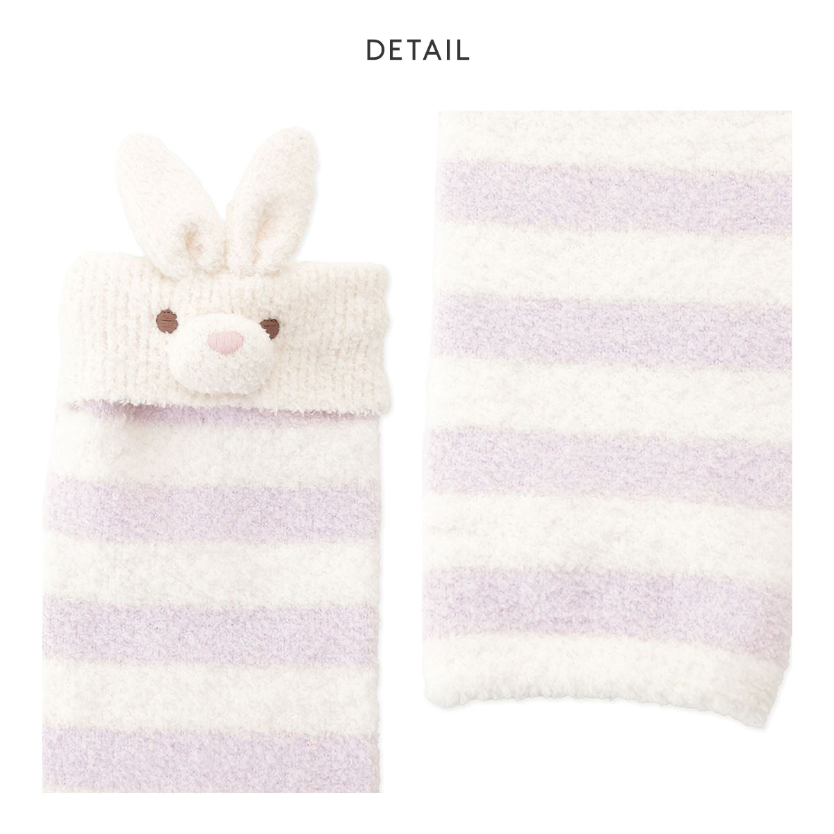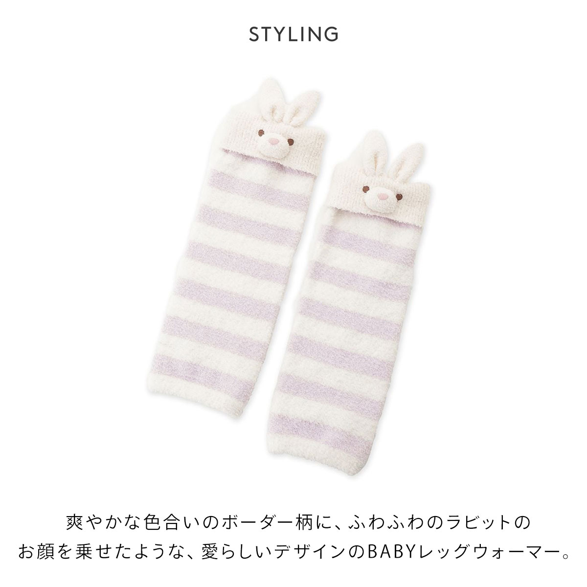 爽やかな色合いのボーダー柄に、ふわふわのラビットのお顔を乗せたような、愛らしいデザインのBABYレッグウォーマー。