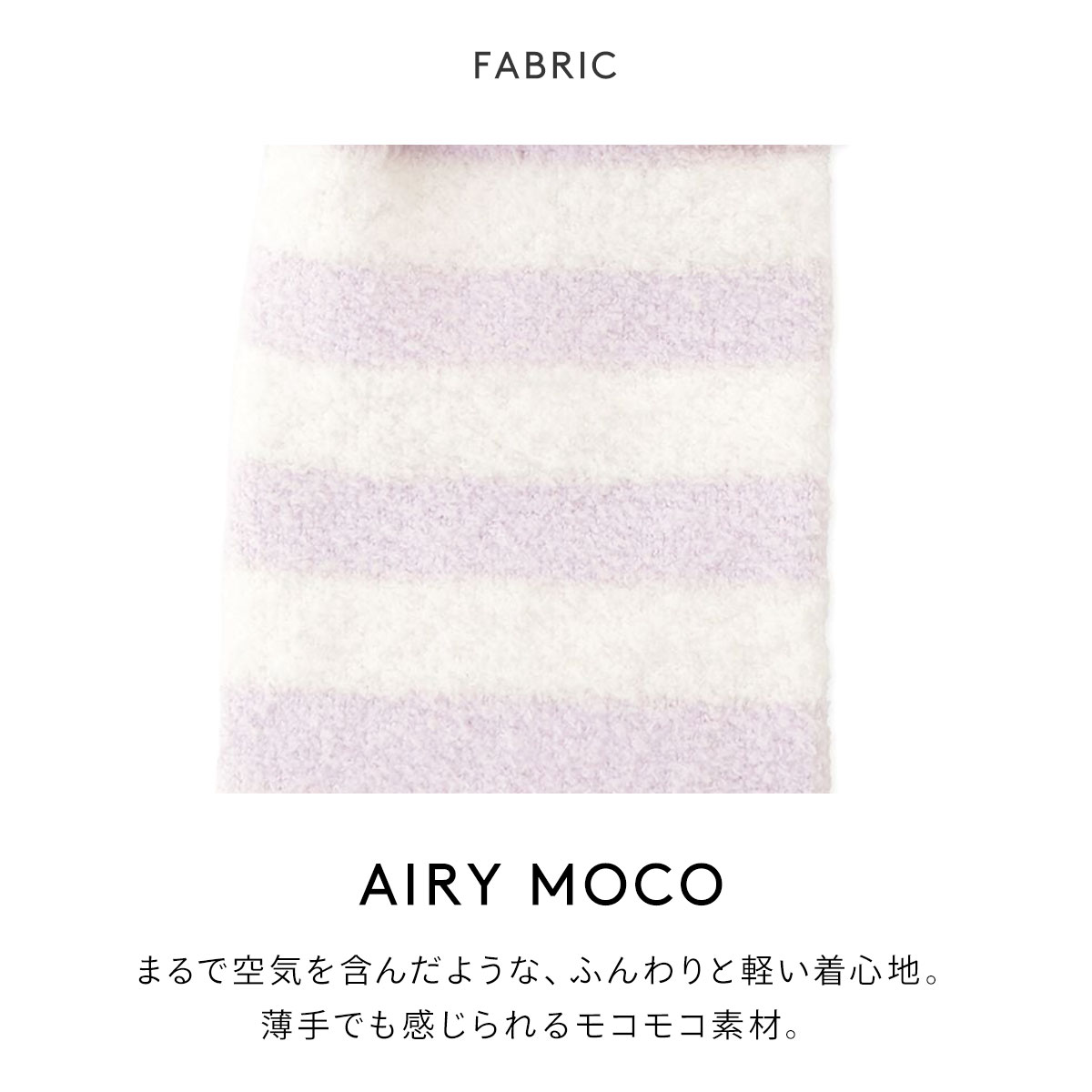 ファブリックには、空気を纏っているような、ふかふかとした軽やかさが魅力の、エアリーモコファブリックを使用。ドライな肌触りで、いつでもさらりと快適なはき心地です。