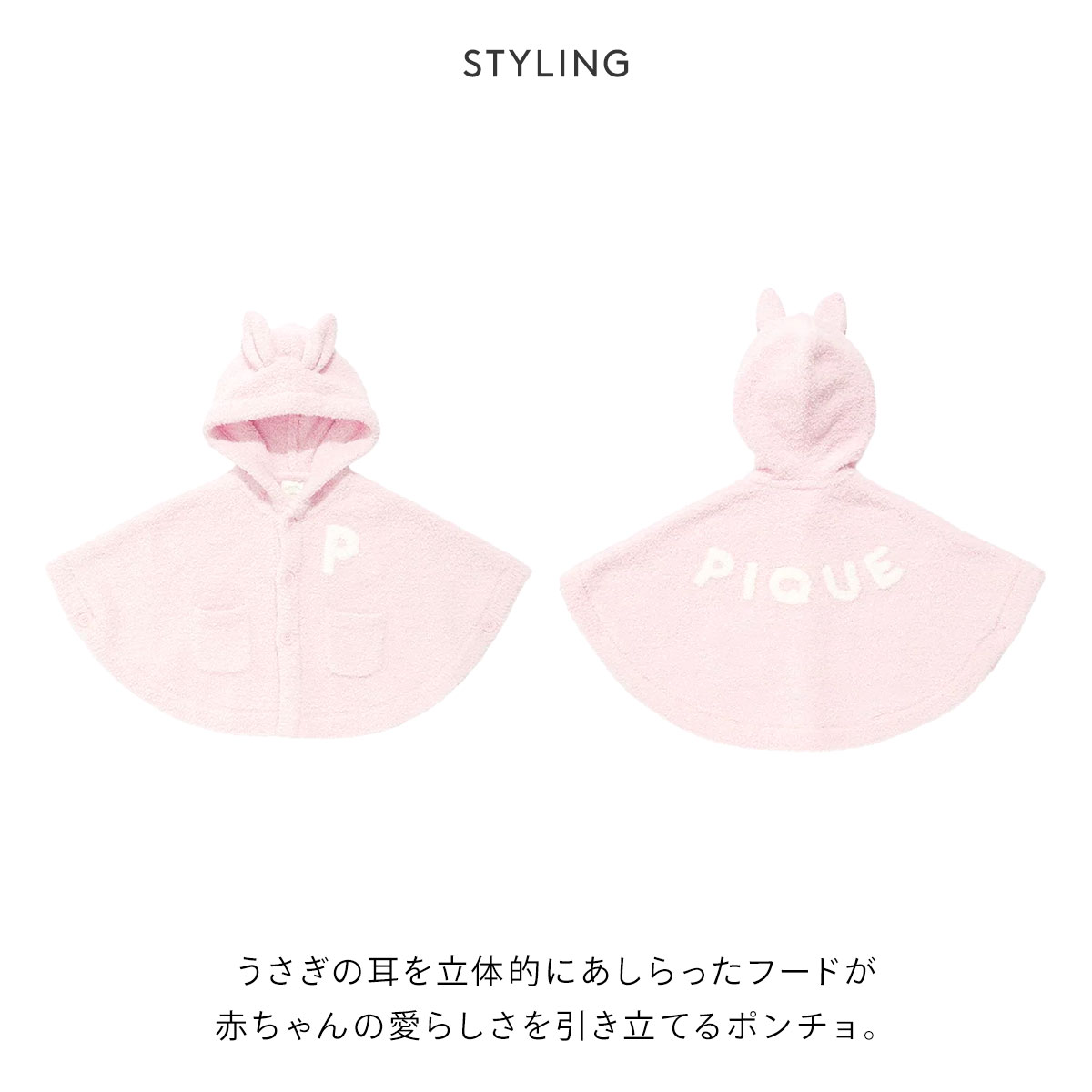 ジェラートピケ★うさぎ耳付きが可愛いパウダーアニマルポンチョ