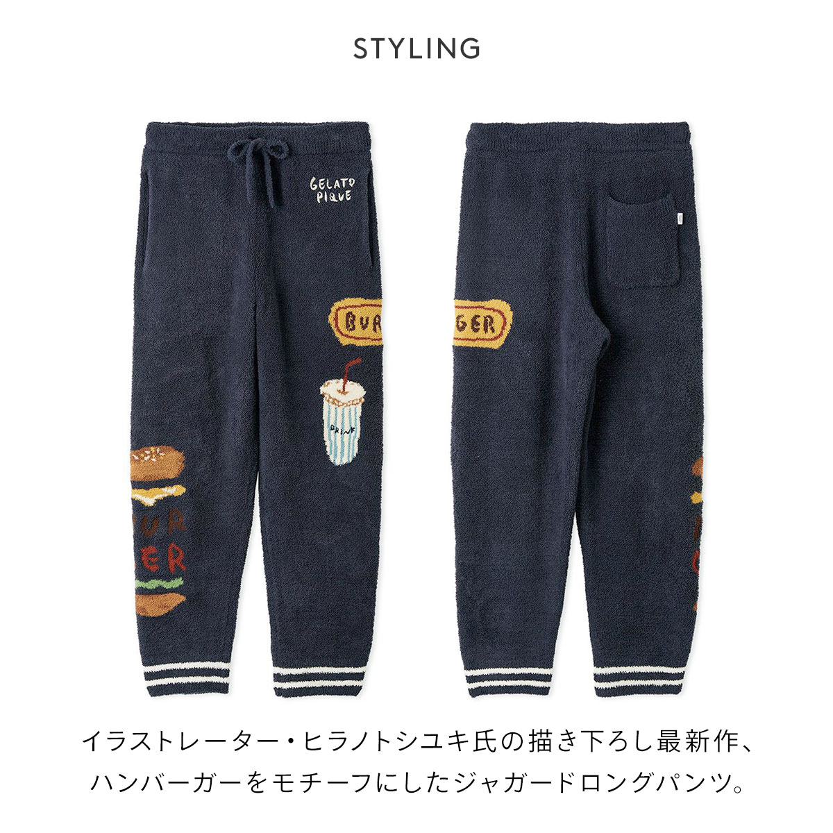 ジェラートピケ★ハンバーガーモチーフを描いたロングパンツ