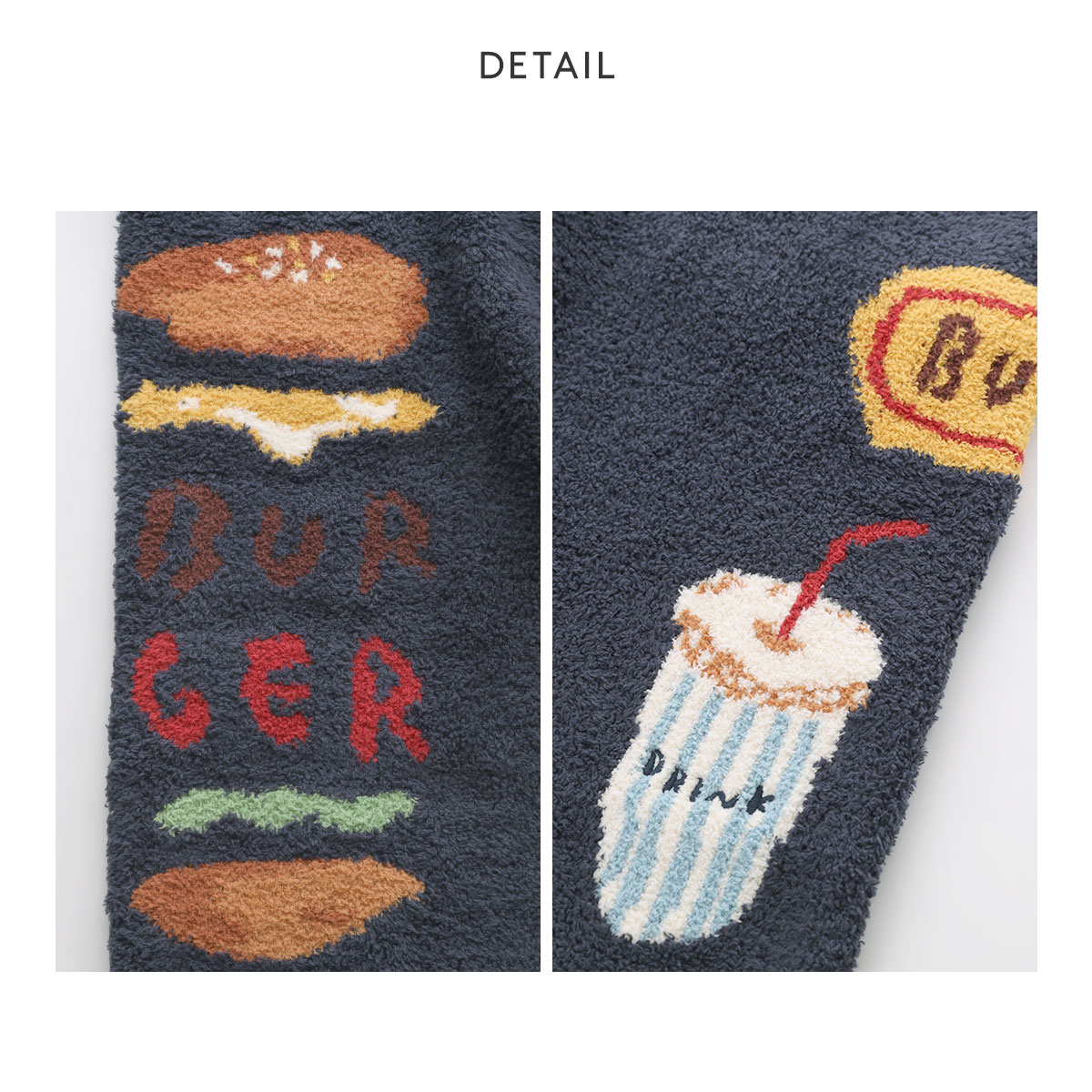 ハンバーガーの絵柄やロゴジャガードをカラフルに散りばめた、キャッチーなデザインです。
