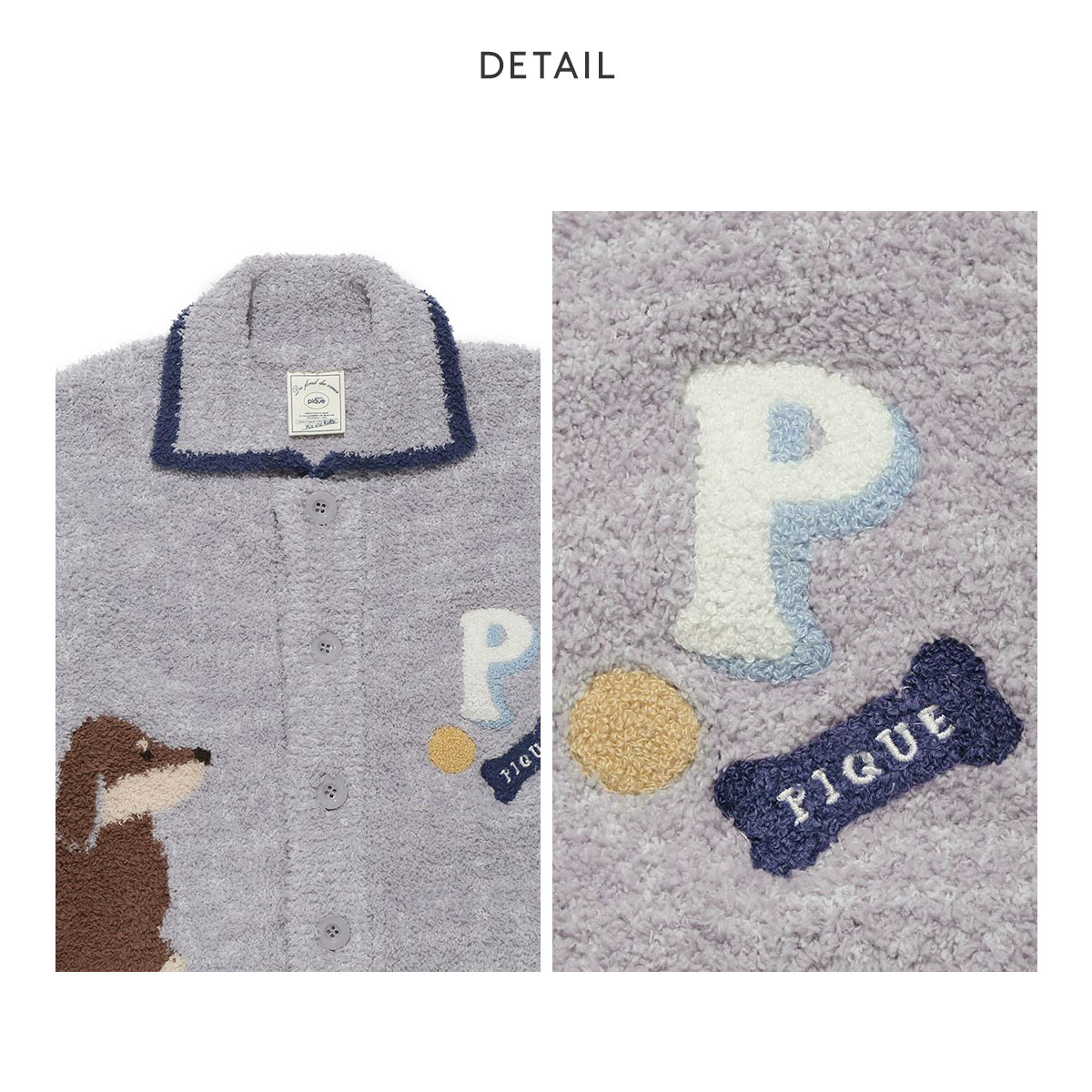 胸元にはPのロゴやドッグトイの絵柄があしらわれ、襟元や袖口、裾にはカラフルな配色デザインを入れてアクセントを添えています。
