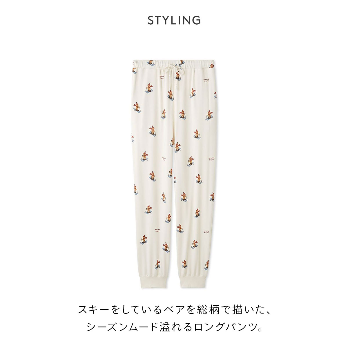 ジェラートピケ★カップルで楽しめるスキーベア柄ロングパンツ