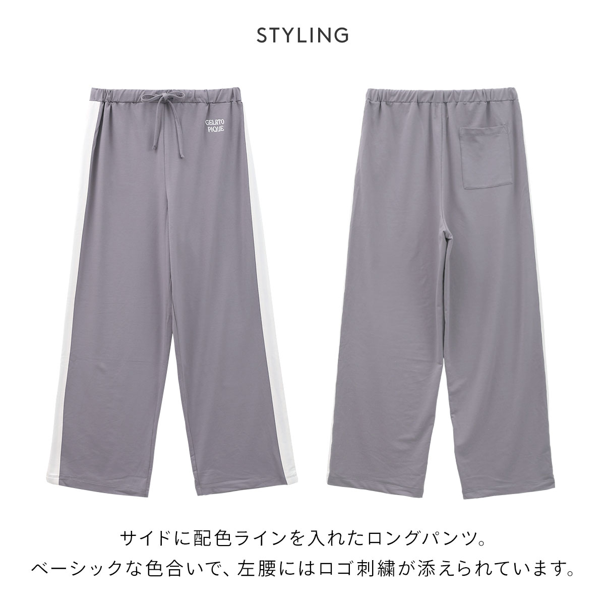 ジェラートピケ★配色サイドライン入りのインレイロングパンツ