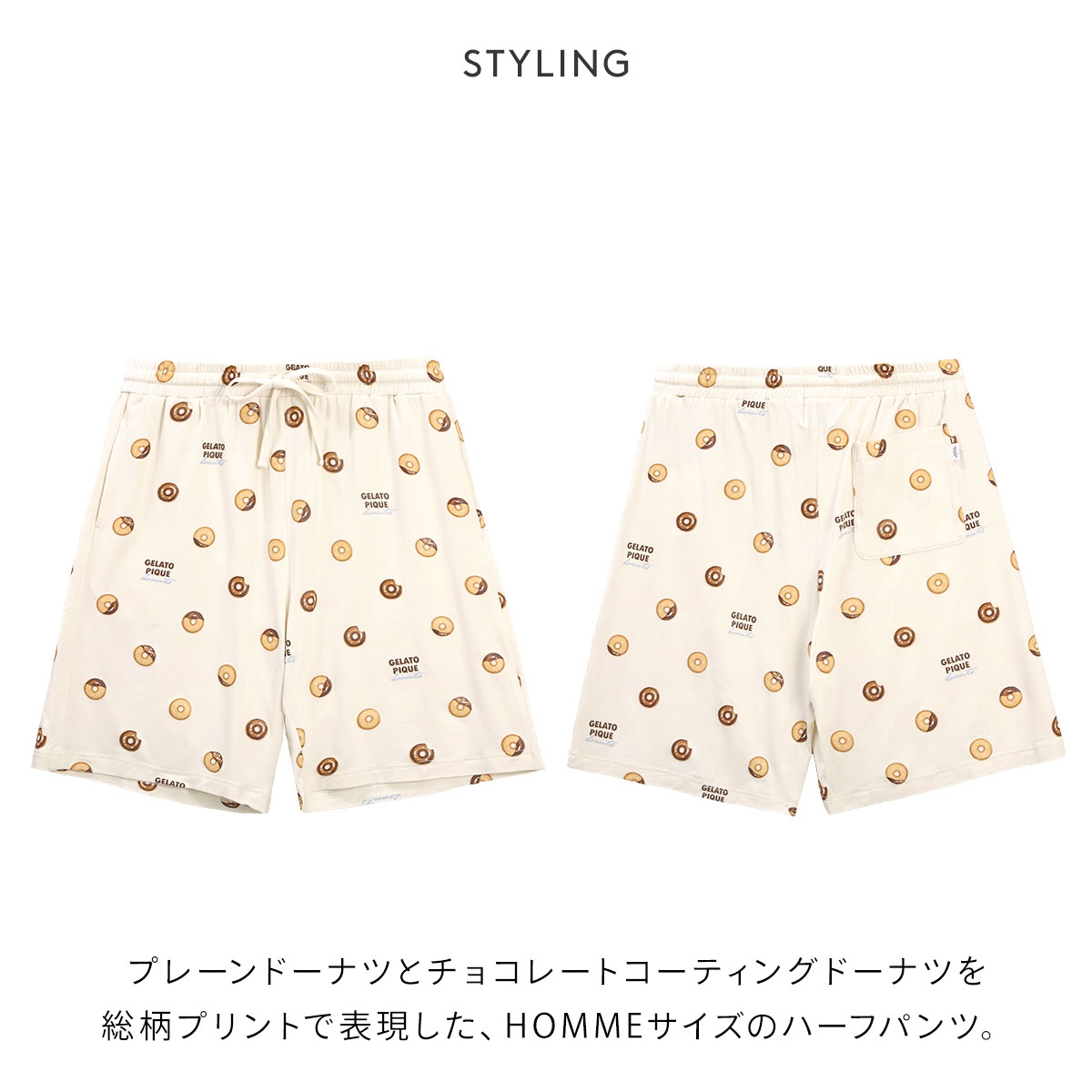 ジェラートピケ★ドーナツ柄がユニークな接触冷感ハーフパンツ