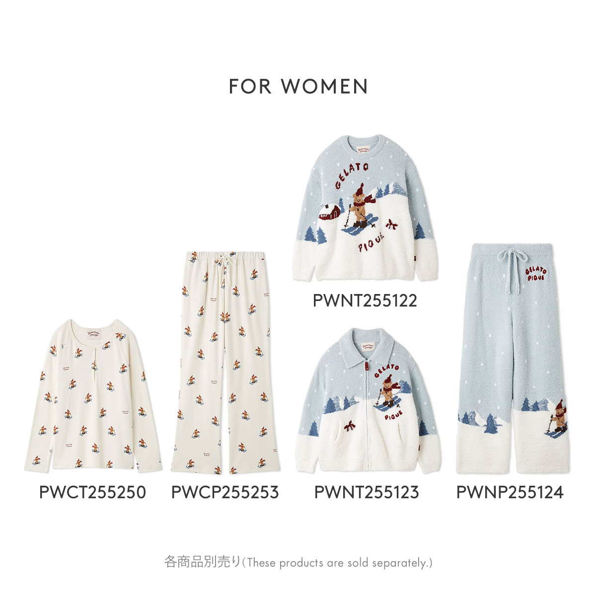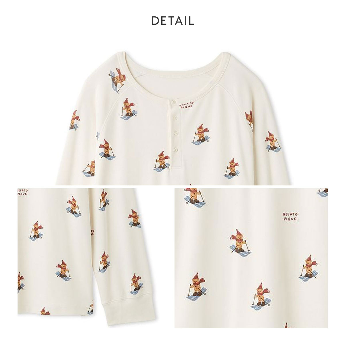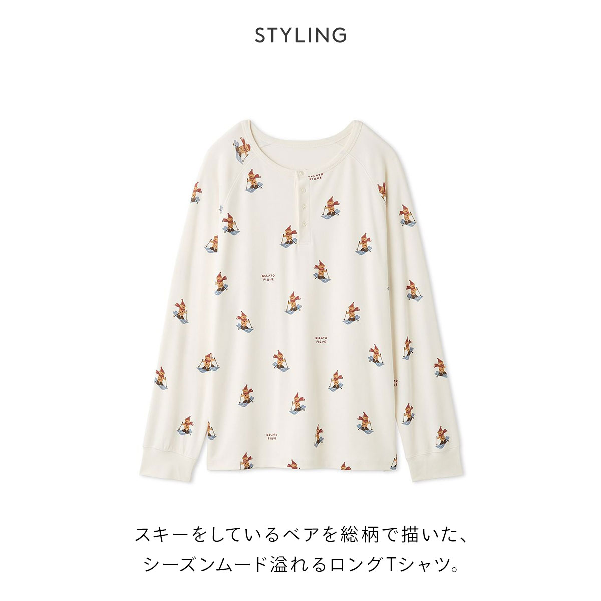 ジェラートピケ★カップルで楽しめるスキーベア柄ロングTシャツ