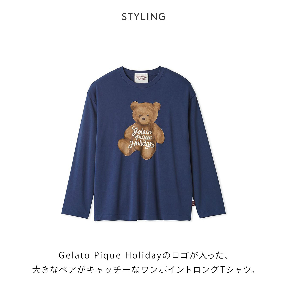 こちらは、Gelato Pique Holidayのロゴが入った、大きなベアがキャッチーなワンポイントロングTシャツです。