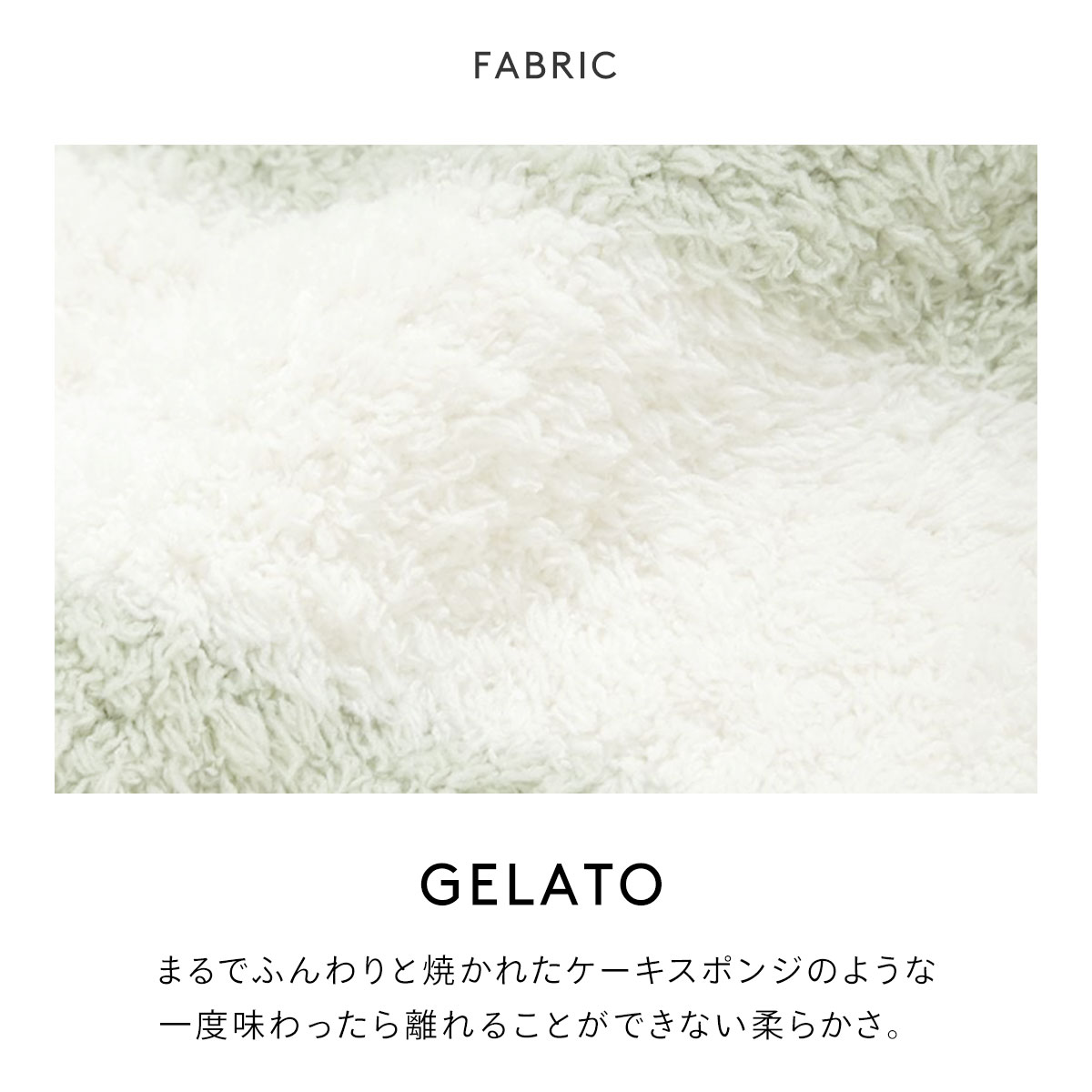 ファブリックは、温もりを感じるふかふかと心地よい弾力がクセになる、保温性にこだわってつくられたジェラート素材を使用。空気を含んだようなふっくらもちもち感でからだを温かく包みます。