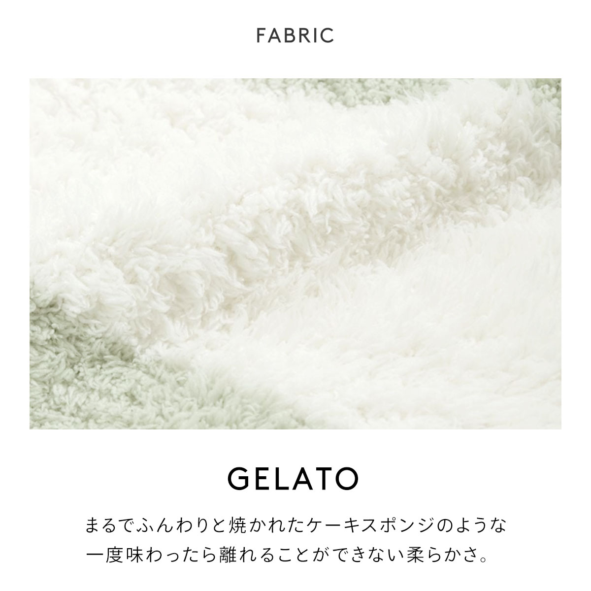 ファブリックは、温もりを感じるふかふかと心地よい弾力がクセになる、保温性にこだわってつくられたジェラート素材を使用。空気を含んだようなふっくらもちもち感でからだを温かく包みます。