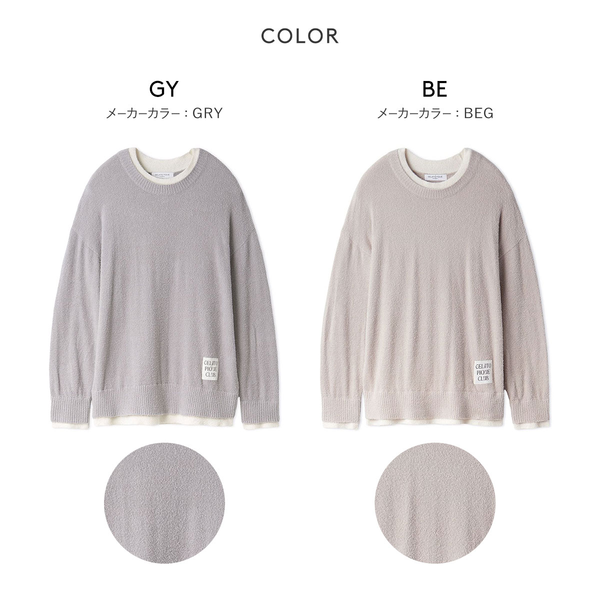 ネックラインや袖口、裾に重ね着風のディテールを入れ、左腰にはオリジナルネームがあしらわれています。