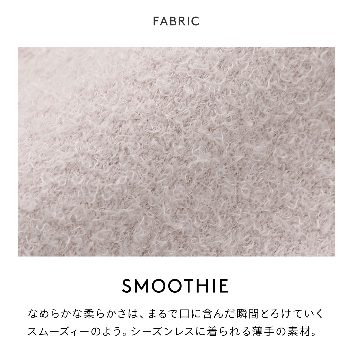 身生地は、繊細な起毛感ととろけるような肌触り、もちもちの触感がやみつきになりそうな、スムーズィー素材。しっとりと肌馴染みのいいなめらかな風合いが、心地よいリラックスタイムを誘います。