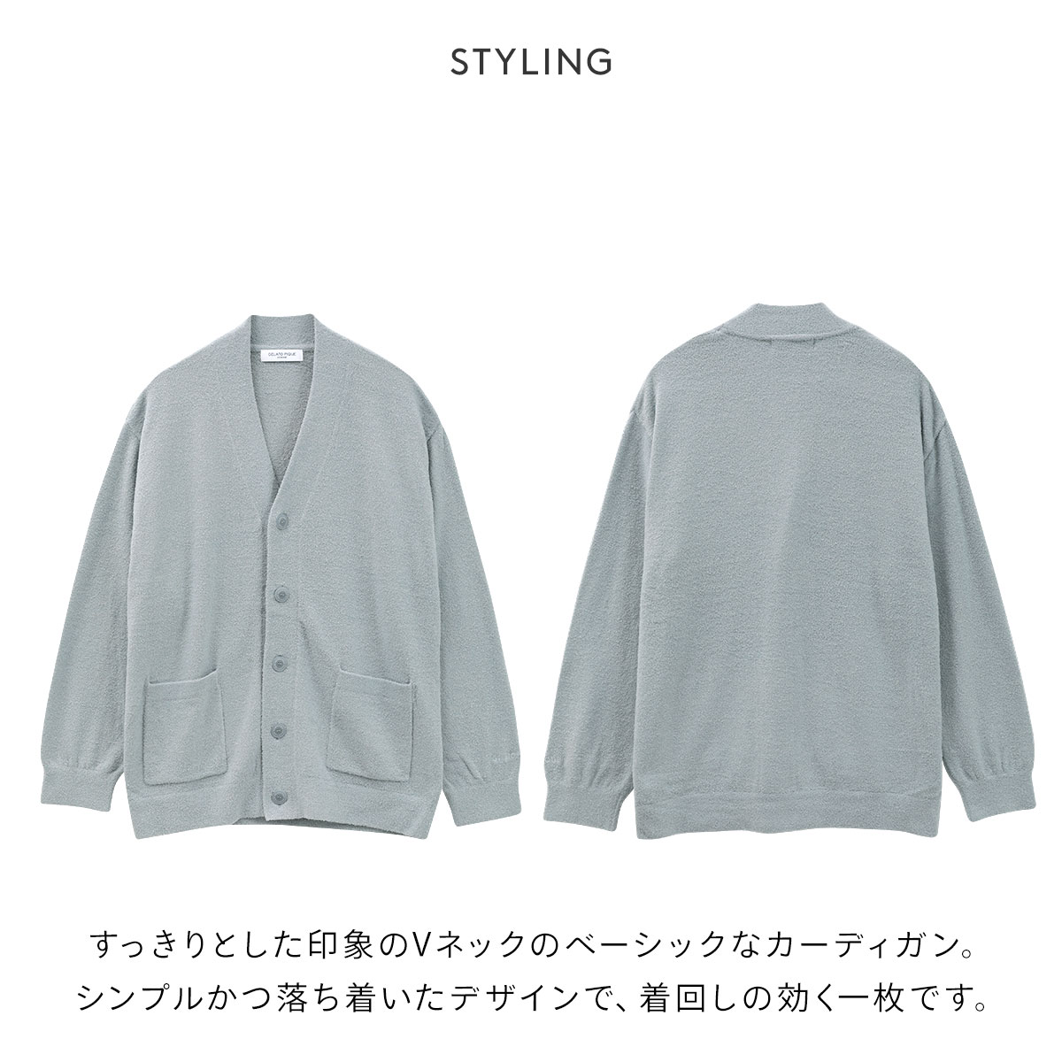 すっきりとした印象のVネックのベーシックなカーディガン。重ね着しやすいサイズ感とシンプルかつ落ち着いたデザインで、着回しの効く一枚です。