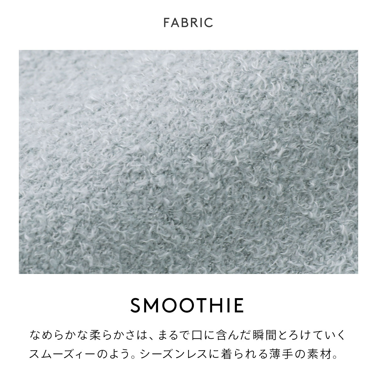 身生地には、繊細な起毛感と、とろけるようになめらかな肌触りがやみつきになりそうな、スムーズィー素材を使用。温度によって温かさを調整してくれる機能素材で、気温が変わりやすい季節も快適にお過ごしいただけます。