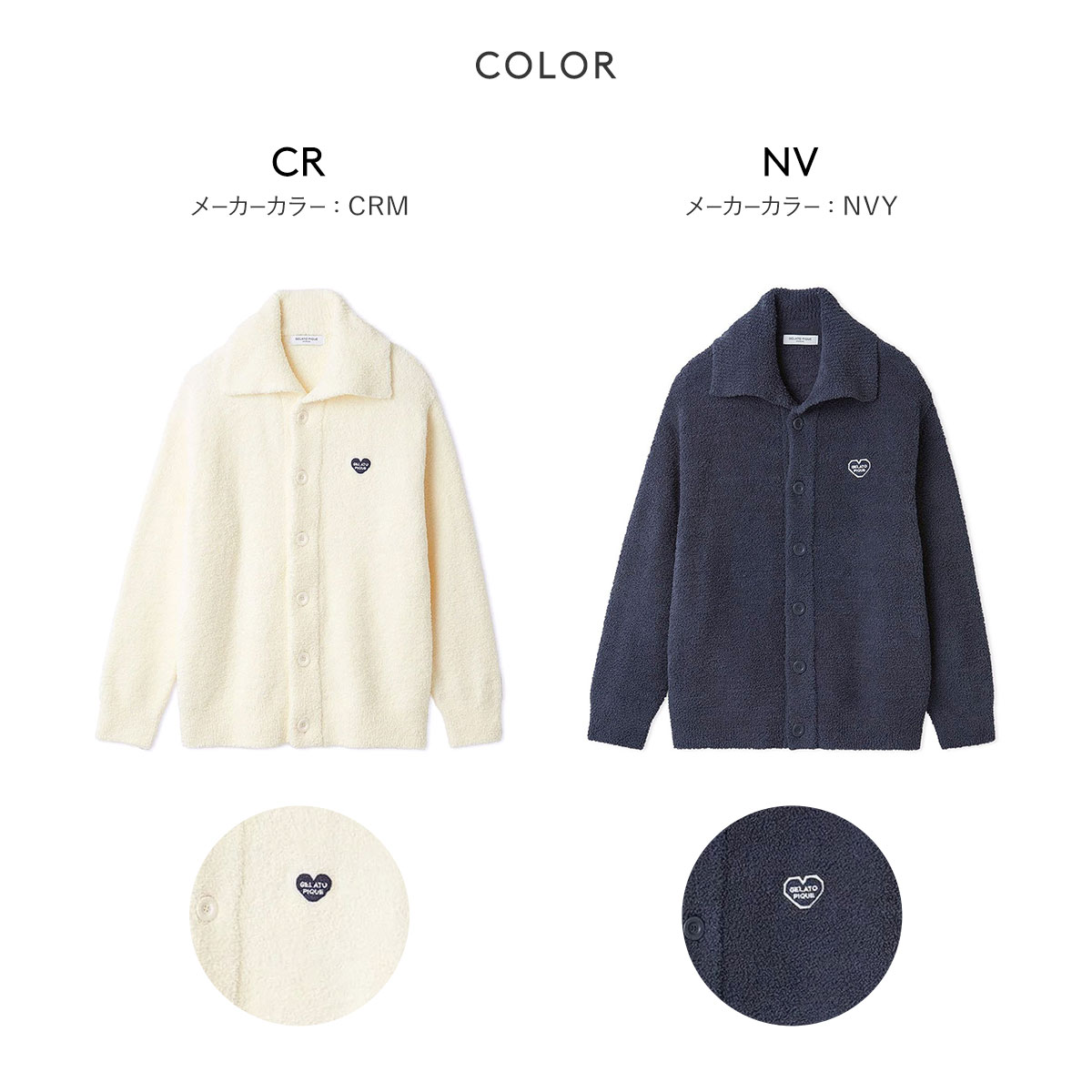 ジェラートピケ★ハート型サガラ刺繍入り襟付きカーディガン