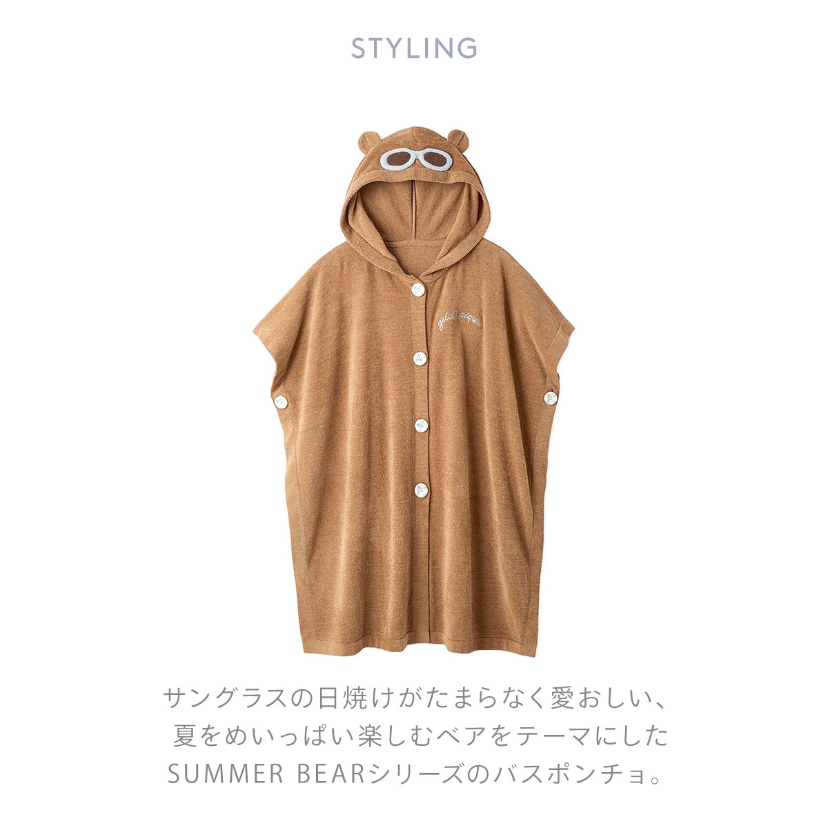 サングラスをかけた夏をめいっぱい楽しむベアをテーマにしたSUMMER BEARシリーズのバスポンチョ。