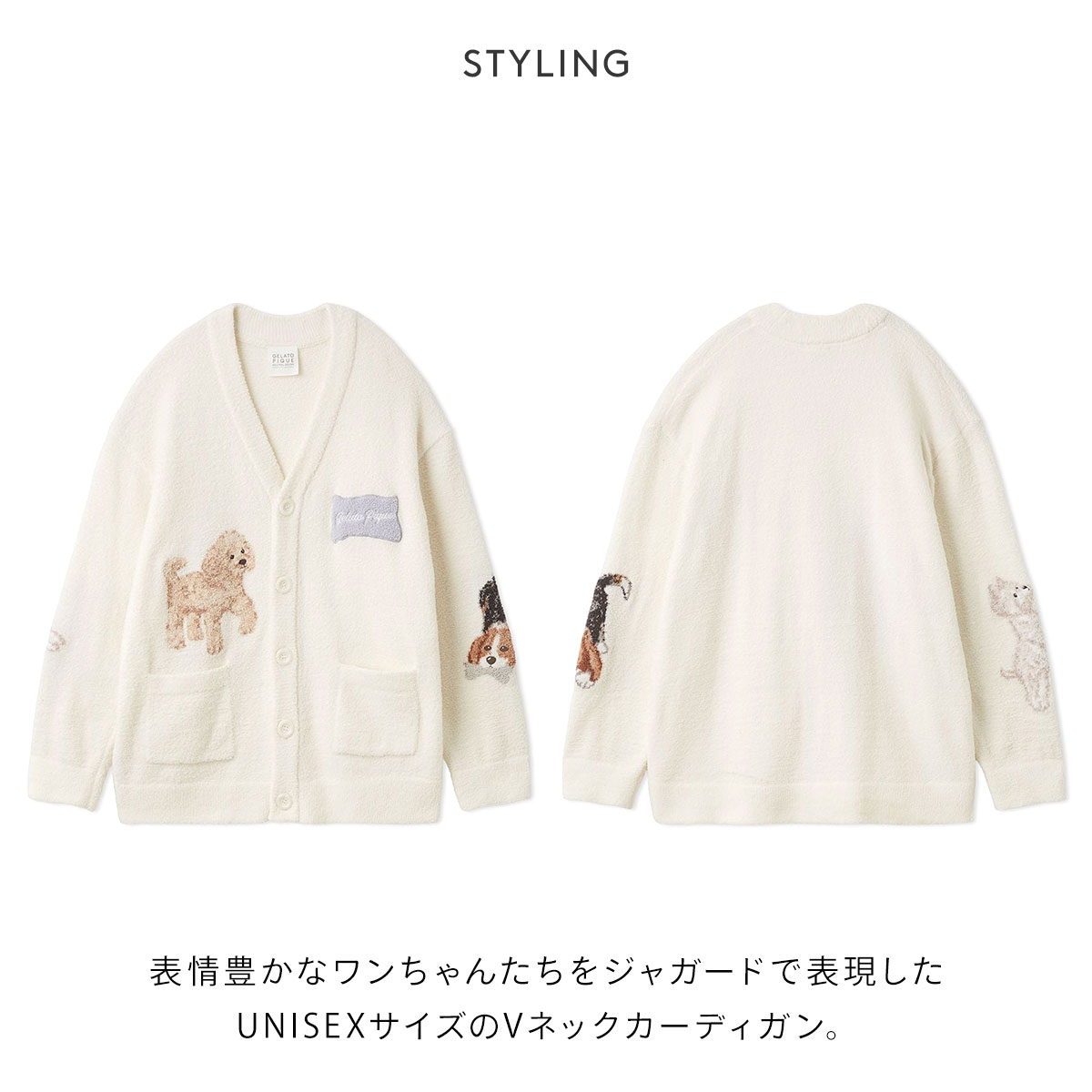 ジェラートピケ★可愛いDOG柄に癒されるUNISEXカーデ
