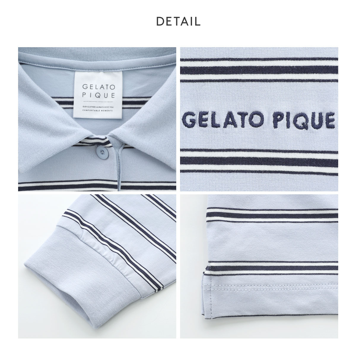 トレンドのボーダー柄をgelato piqueらしい配色でデザインしたポロカラーワンピース。胸元にはブランドロゴの刺繍がほどされています。