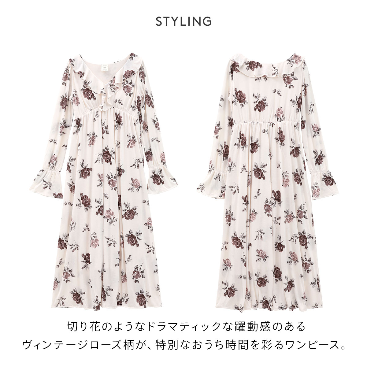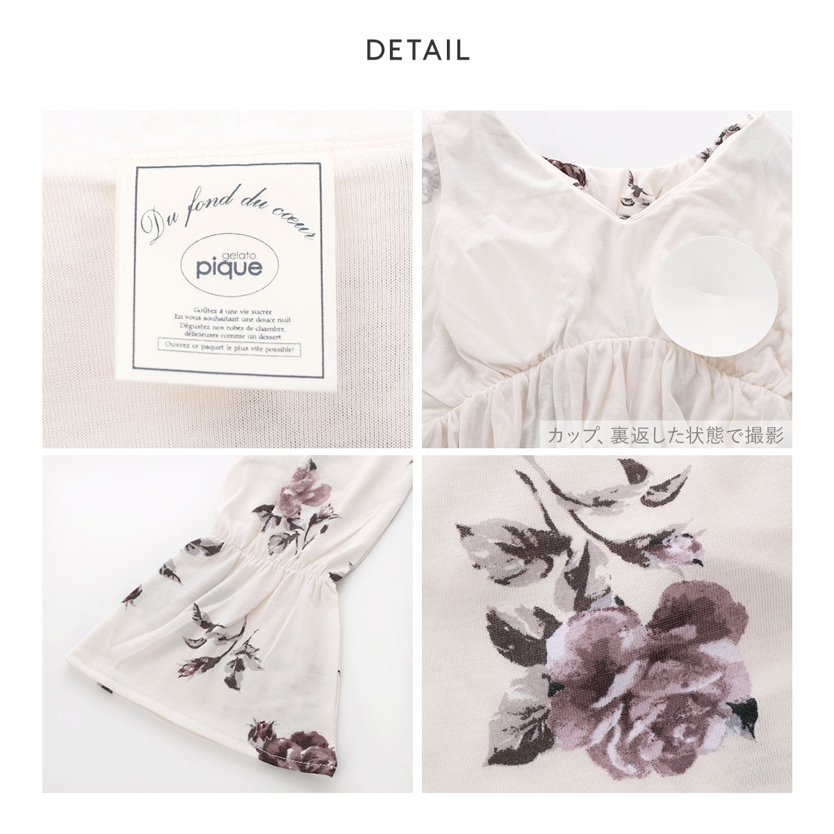 ジェラートピケ レディース ヴィンテージローズ柄ワンピース ドレス カップ付き カップイン ジェラピケ ルームウェア gelato pique