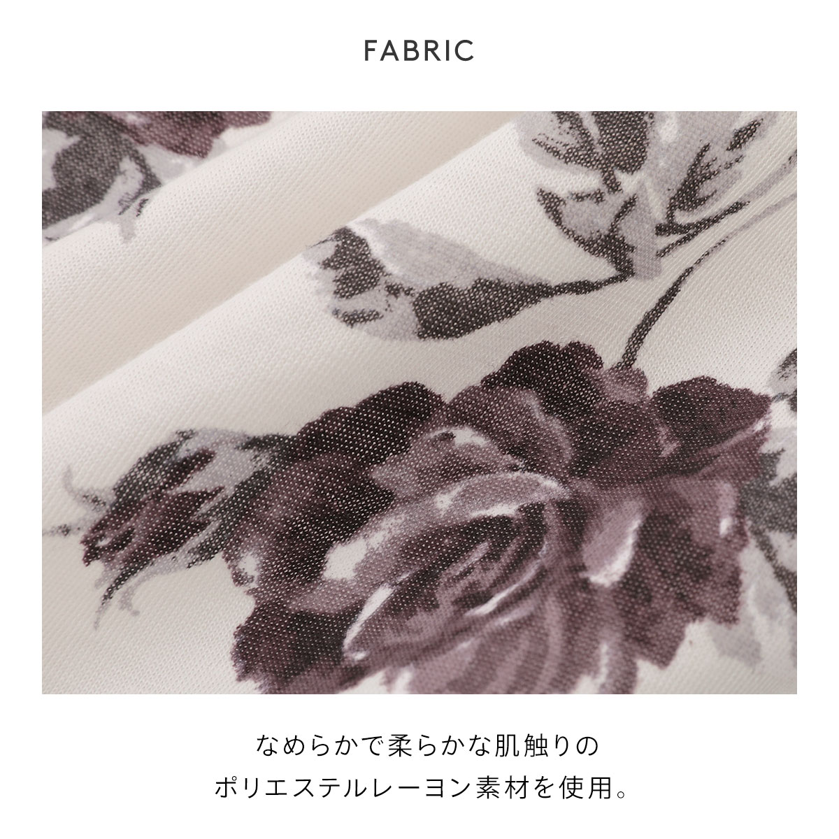 ジェラートピケ★ローズ柄が華やかなカップ付フレアドレス