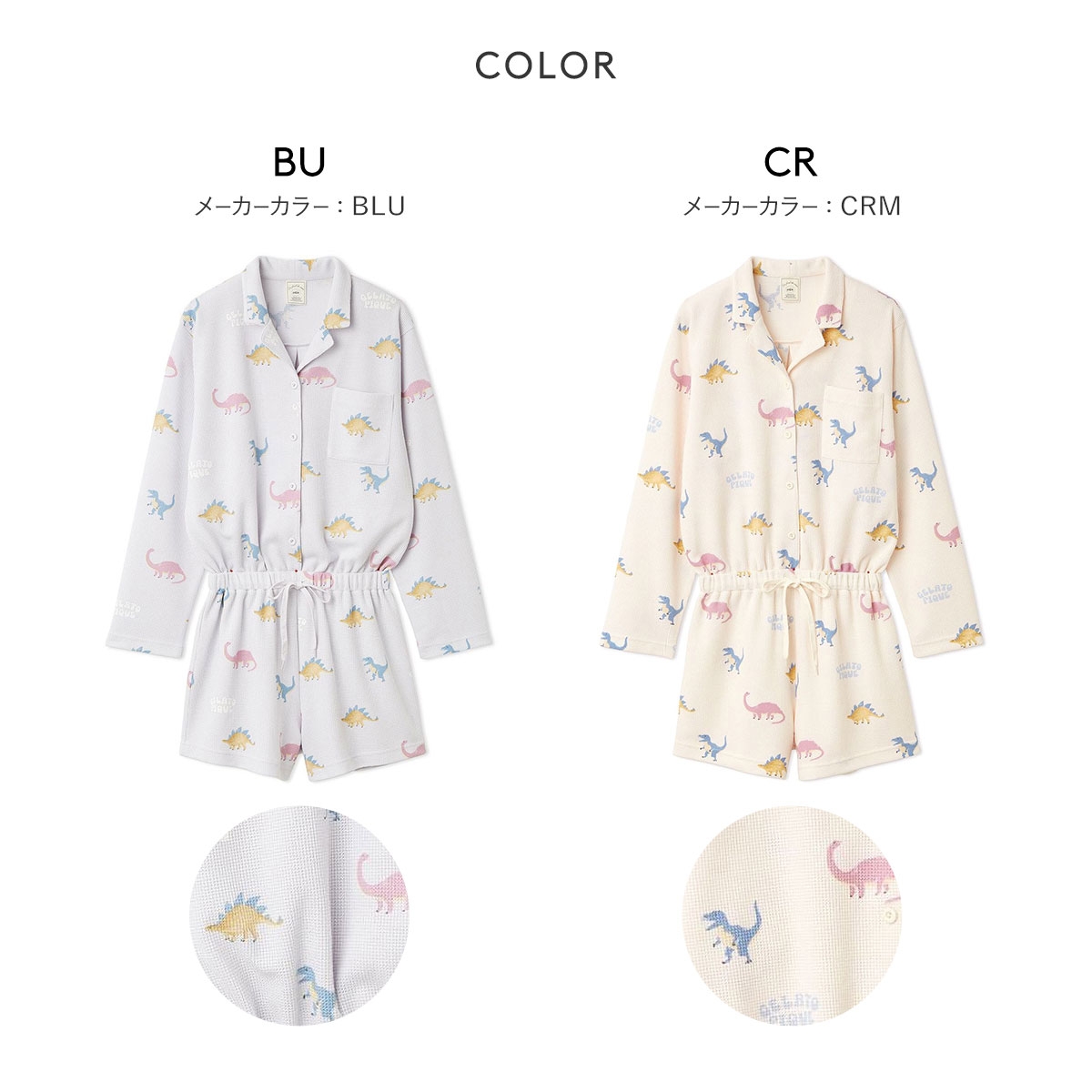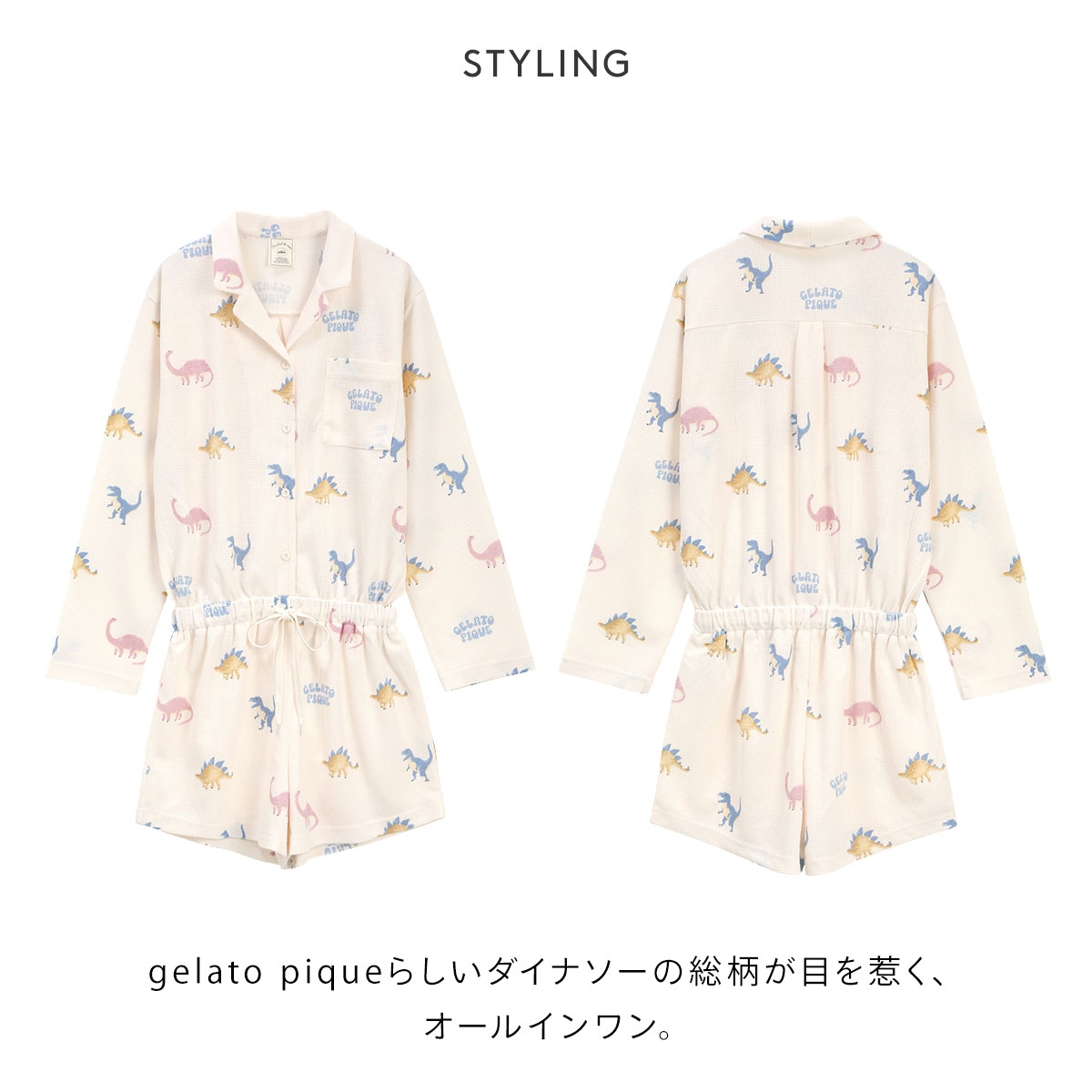 ジェラートピケ レディース ダイナソー柄ワッフルオールインワン ジェラピケ パジャマ ルームウェア gelato pique(CR-クリーム-Free)