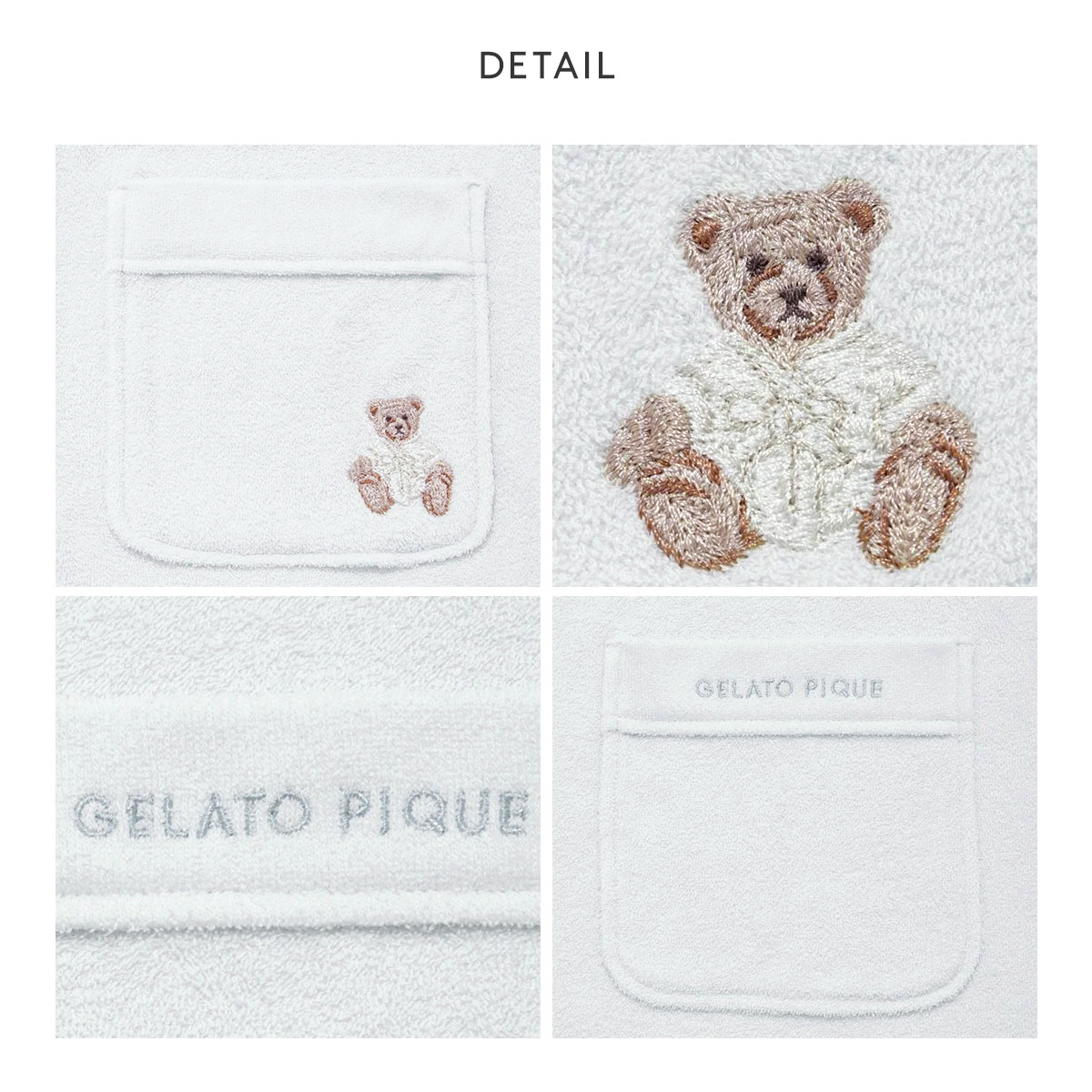 ポケットにあしらった、ガウンを着たベアのワンポイント刺繍も見逃せないポイント。