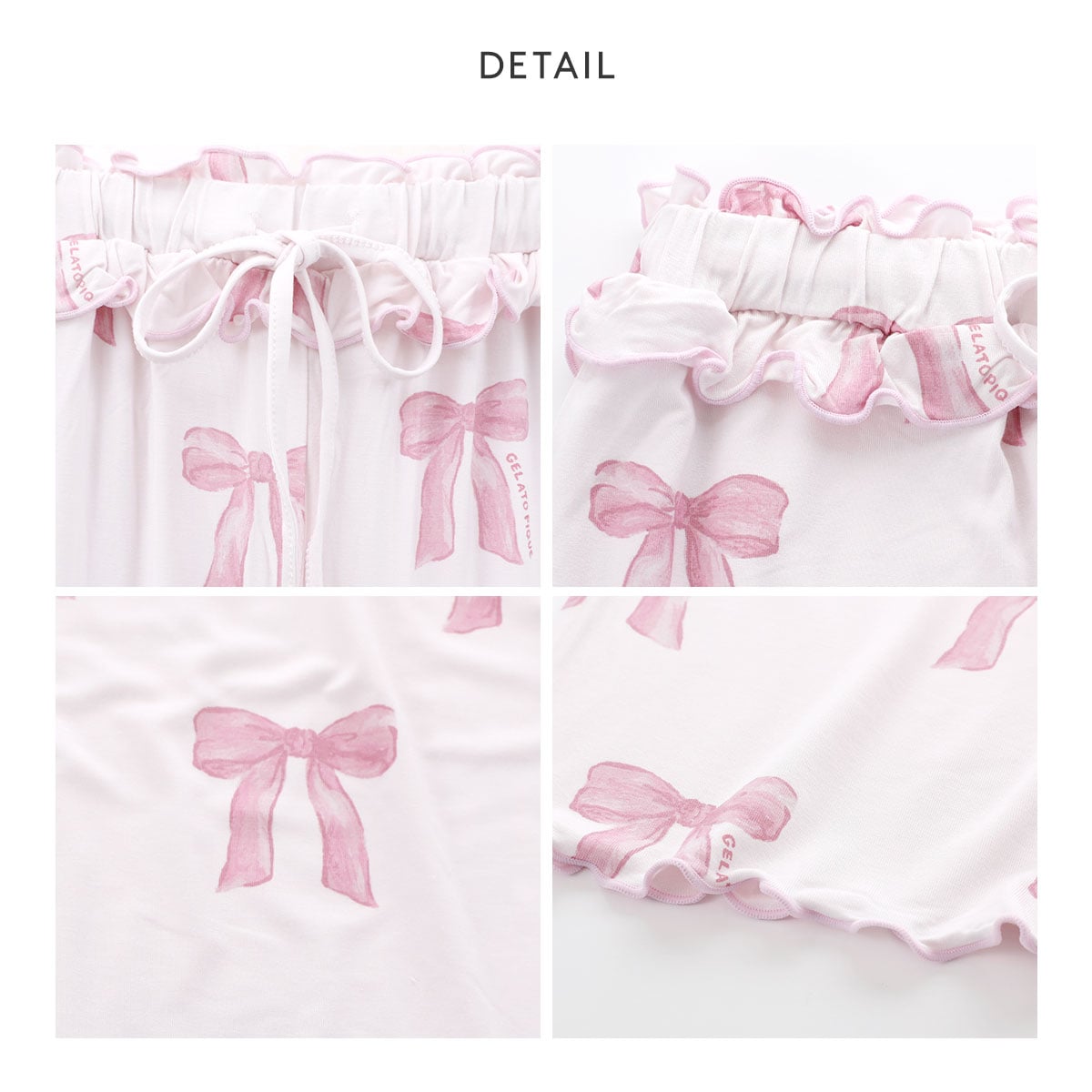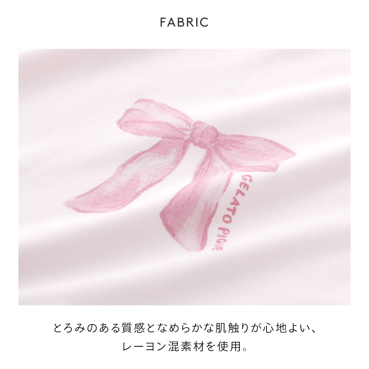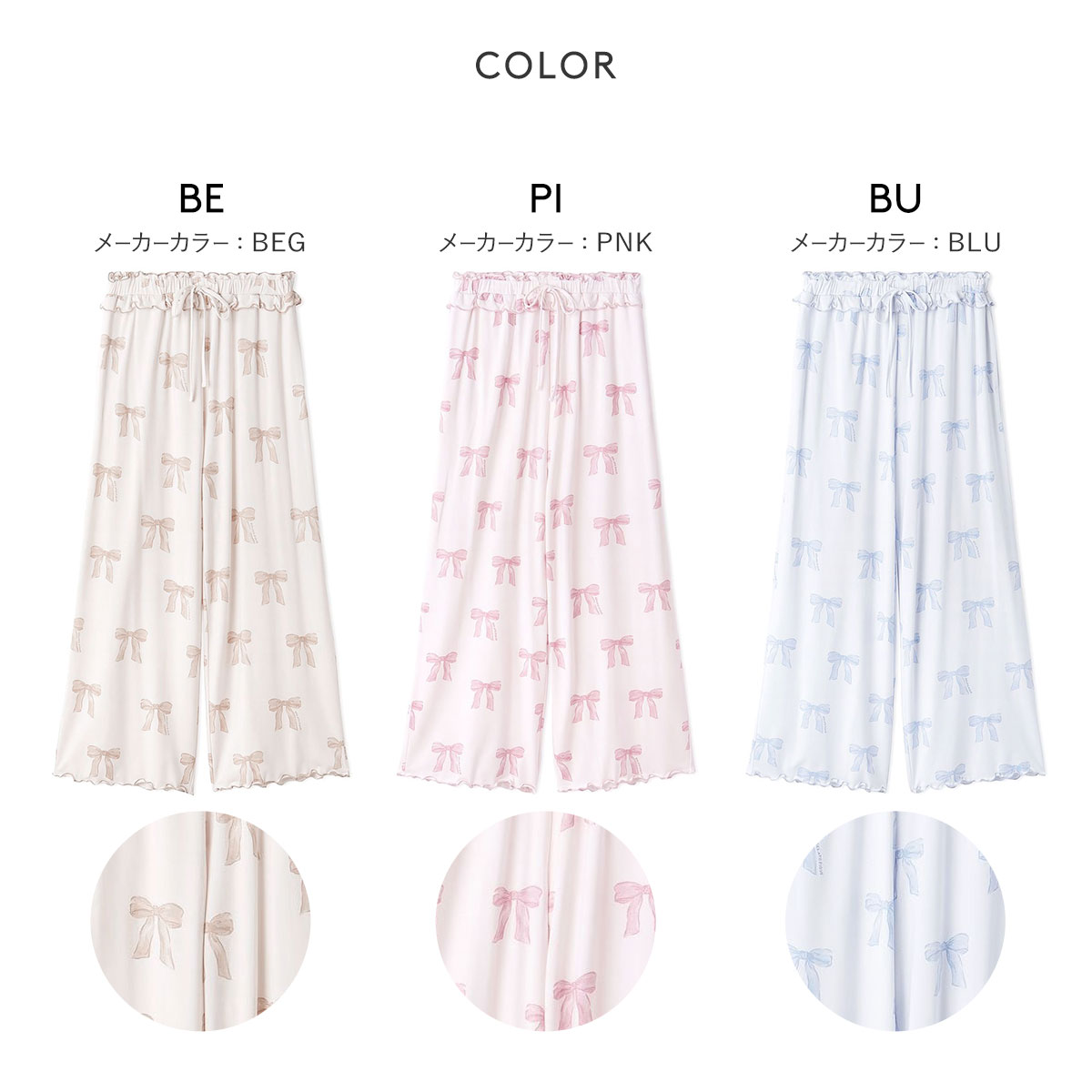 ジェラートピケ レディース リボン柄ロングパンツ ジェラピケ パジャマ ルームウェア gelato pique(PI-ピンク-Free)