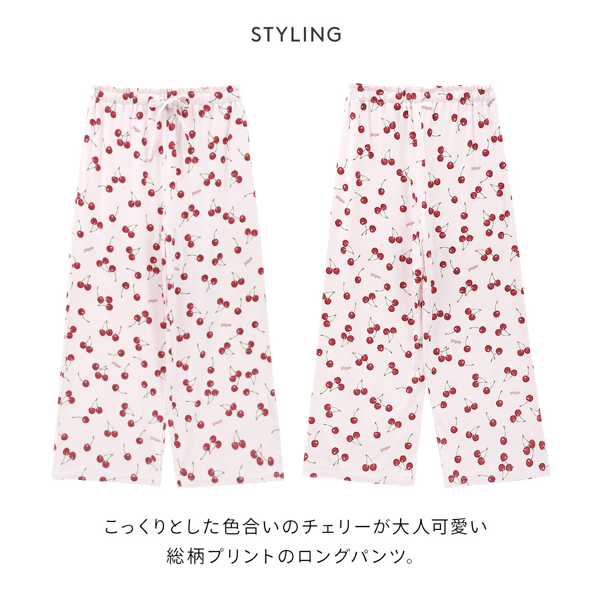 ジェラートピケ★吸湿発熱素材のチェリー柄ロングパンツ