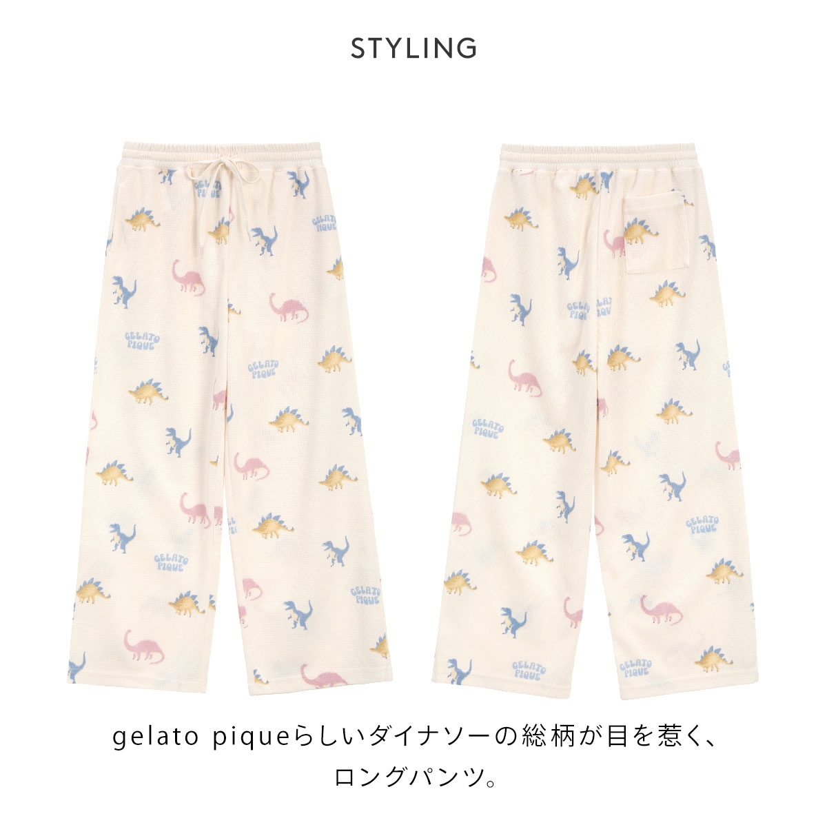 ジェラートピケ★POPなダイナソー柄のワッフルロングパンツ