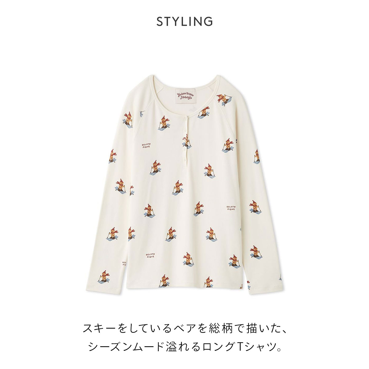ジェラートピケ★カップルで楽しめるスキーベア柄ロングTシャツ