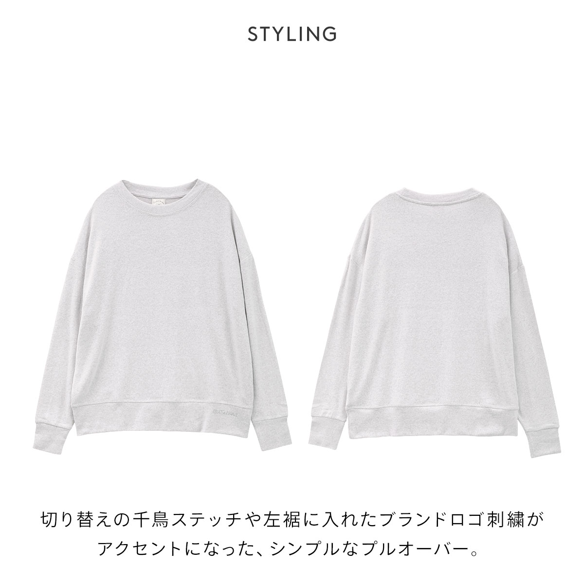 降り積もった粉雪のようにふかふかで軽やかな、微起毛素材のスノーファブリックを使用したシンプルなプルオーバー。