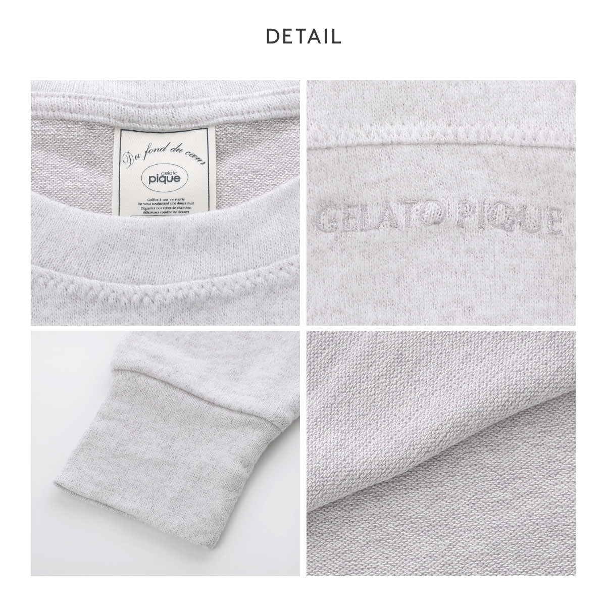 袖口、裾の切り替え部分をあえて長めに設計した、スノーの肌触りをしっかりお楽しみいただける1枚です。