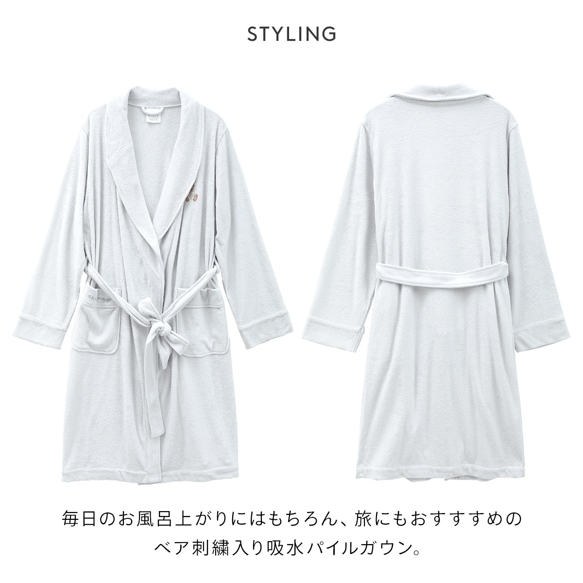ジェラートピケ★旅にもおすすめのベア刺繍入り吸水パイルガウン