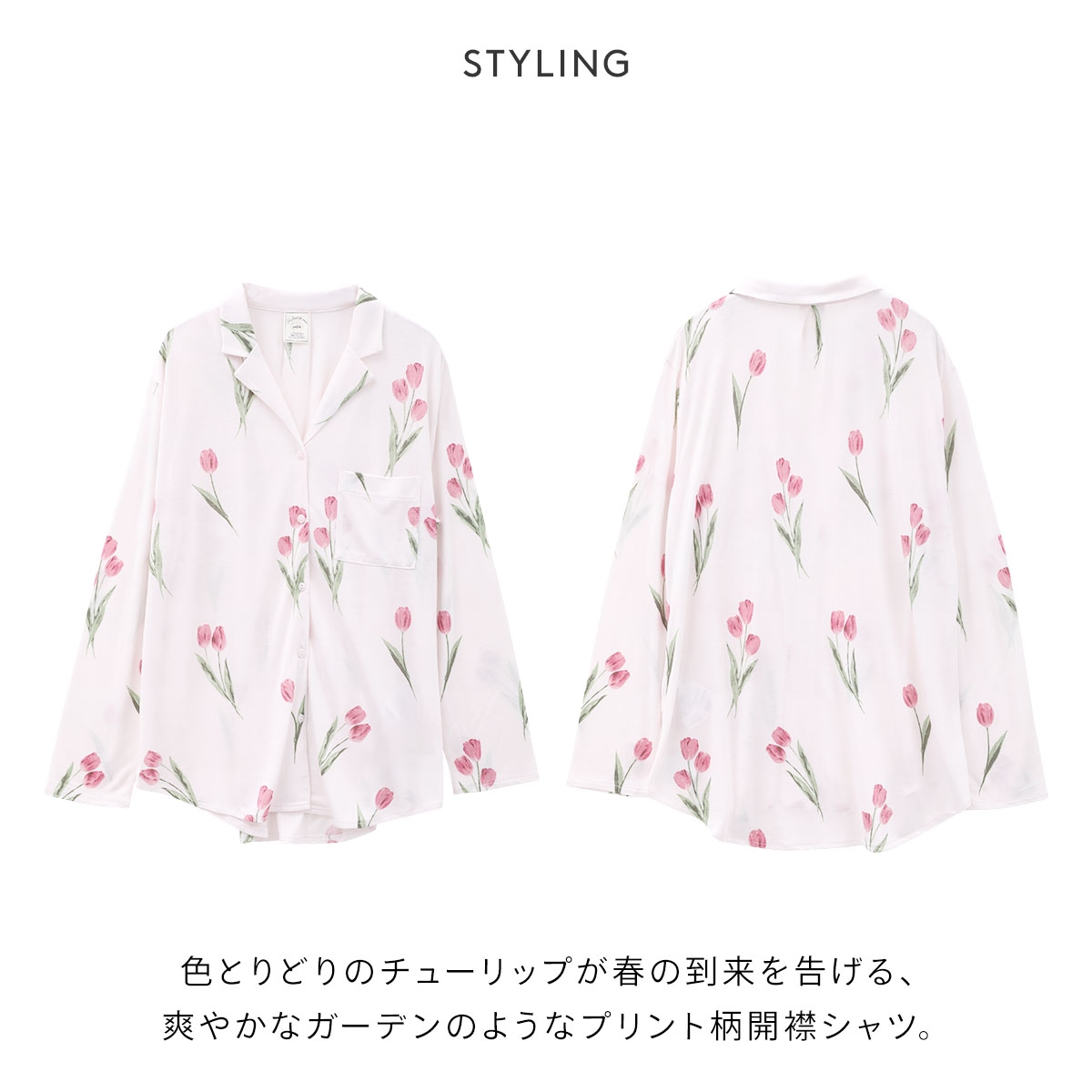 ジェラートピケ★チューリップ柄が春らしい開襟シャツ