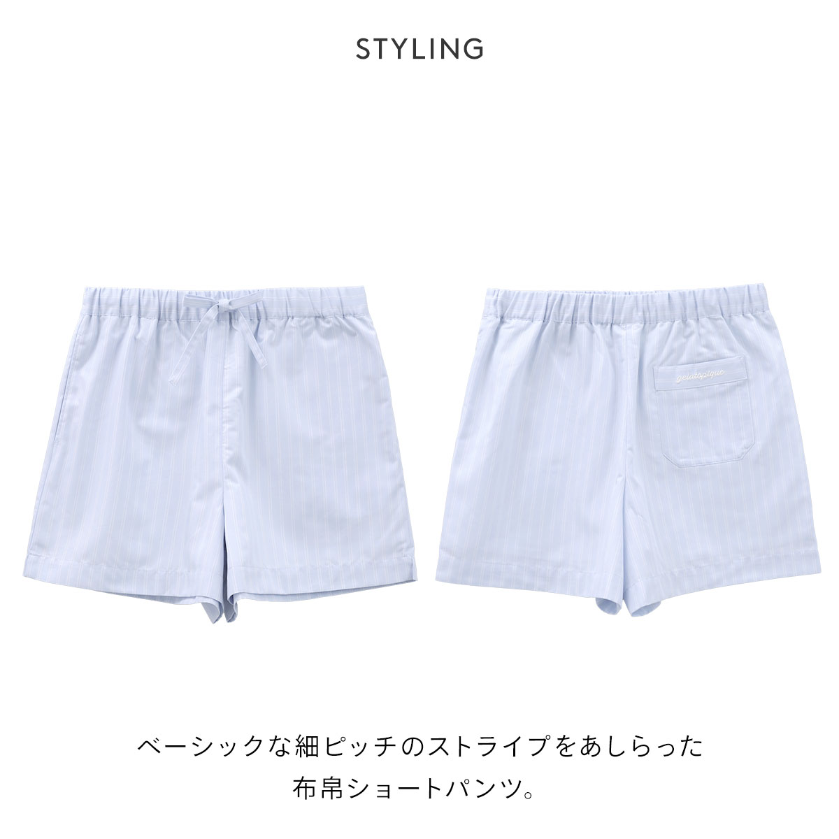 ベーシックな細ピッチのストライプをあしらった布帛ショートパンツ
