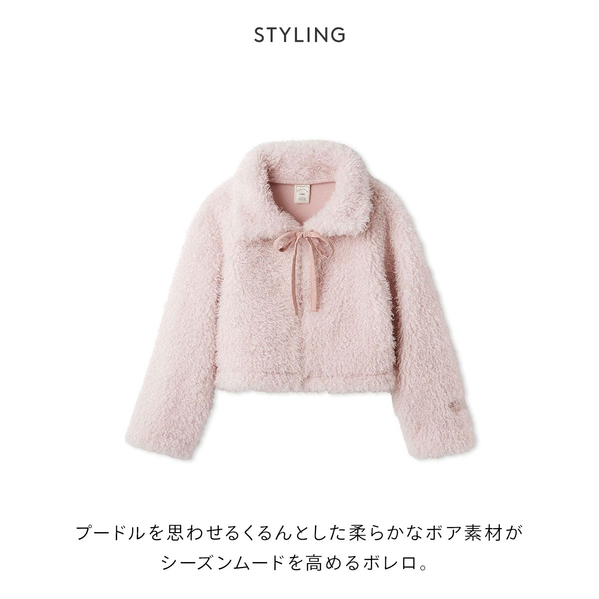 プードルを思わせるくるんとした柔らかなボア素材がシーズンムードを高めるボレロ。