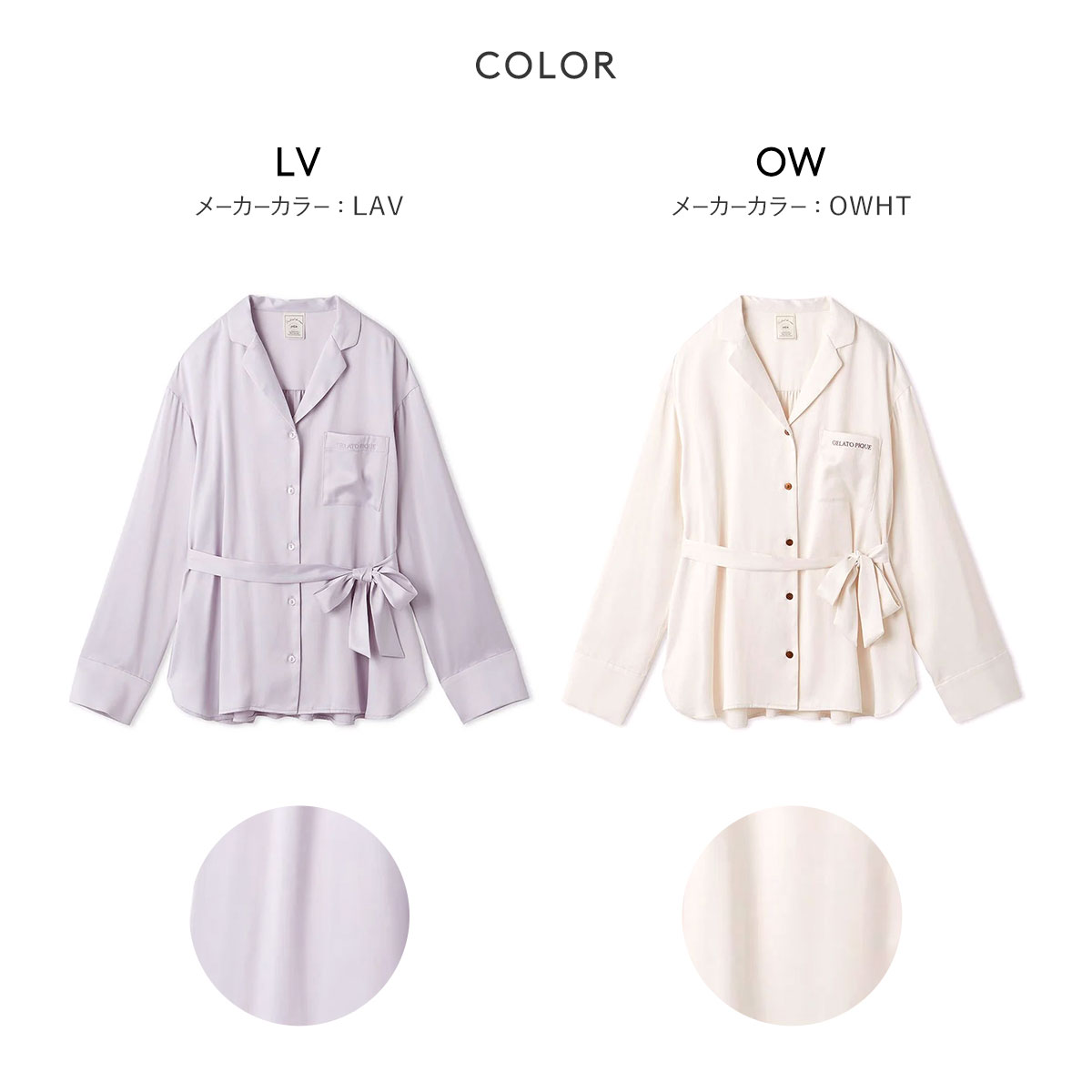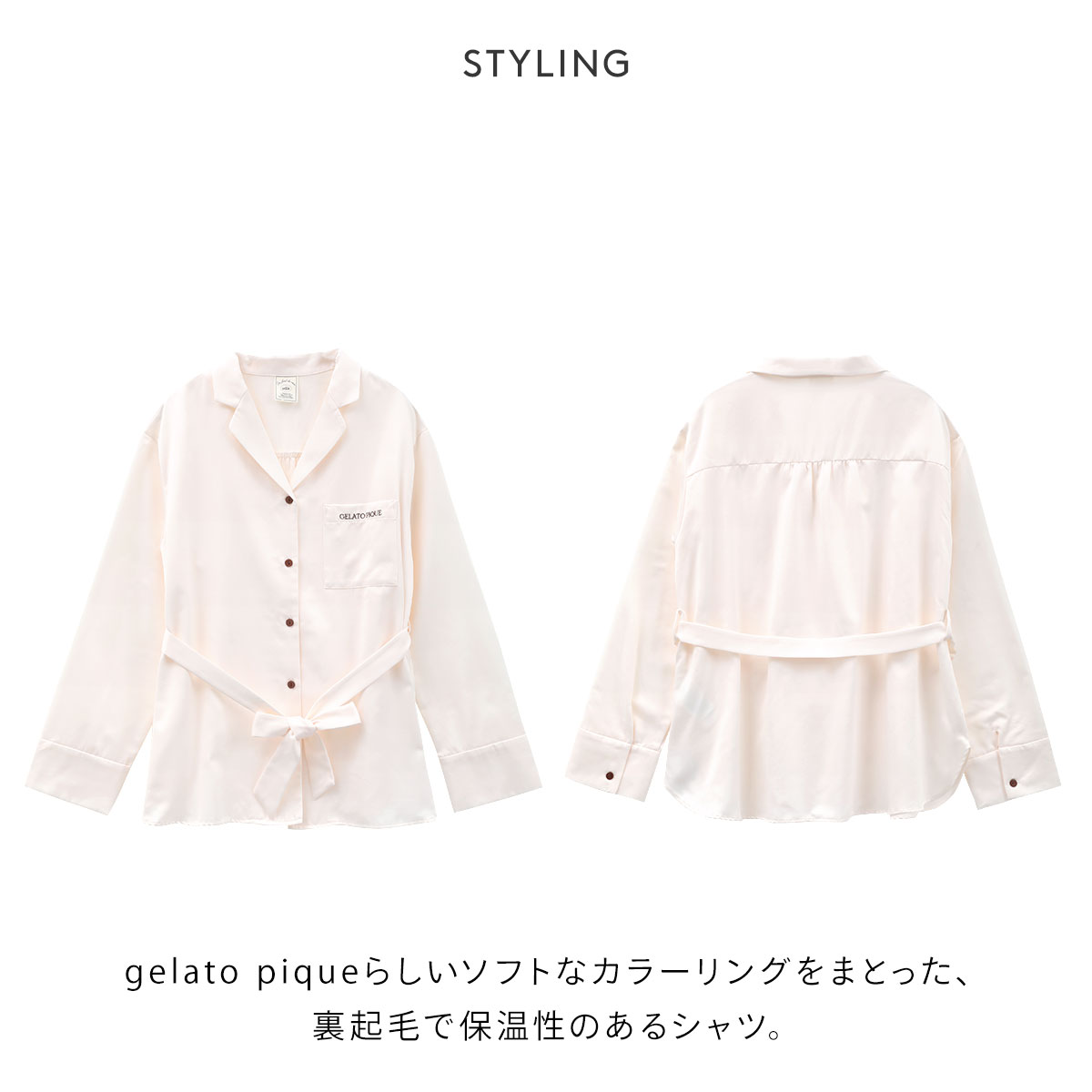 gelato piqueらしいソフトなカラーリングをまとったなめらかなサテン素材のシャツ。