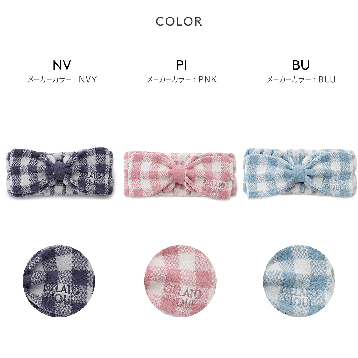 ジェラートピケ レディース WhiteDay チェック柄ヘアバンド ジェラピケ gelato pique ホワイトデー(BU-ブルー-Free)