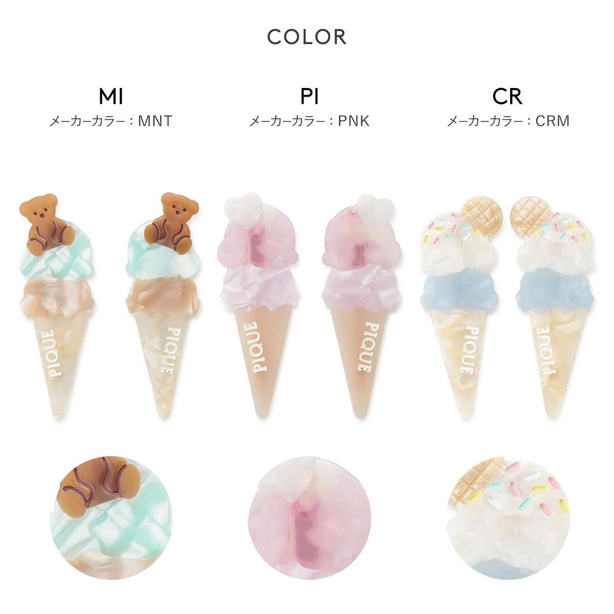 ジェラートピケ★カラフルコーンアイスのミニヘアクリップセット