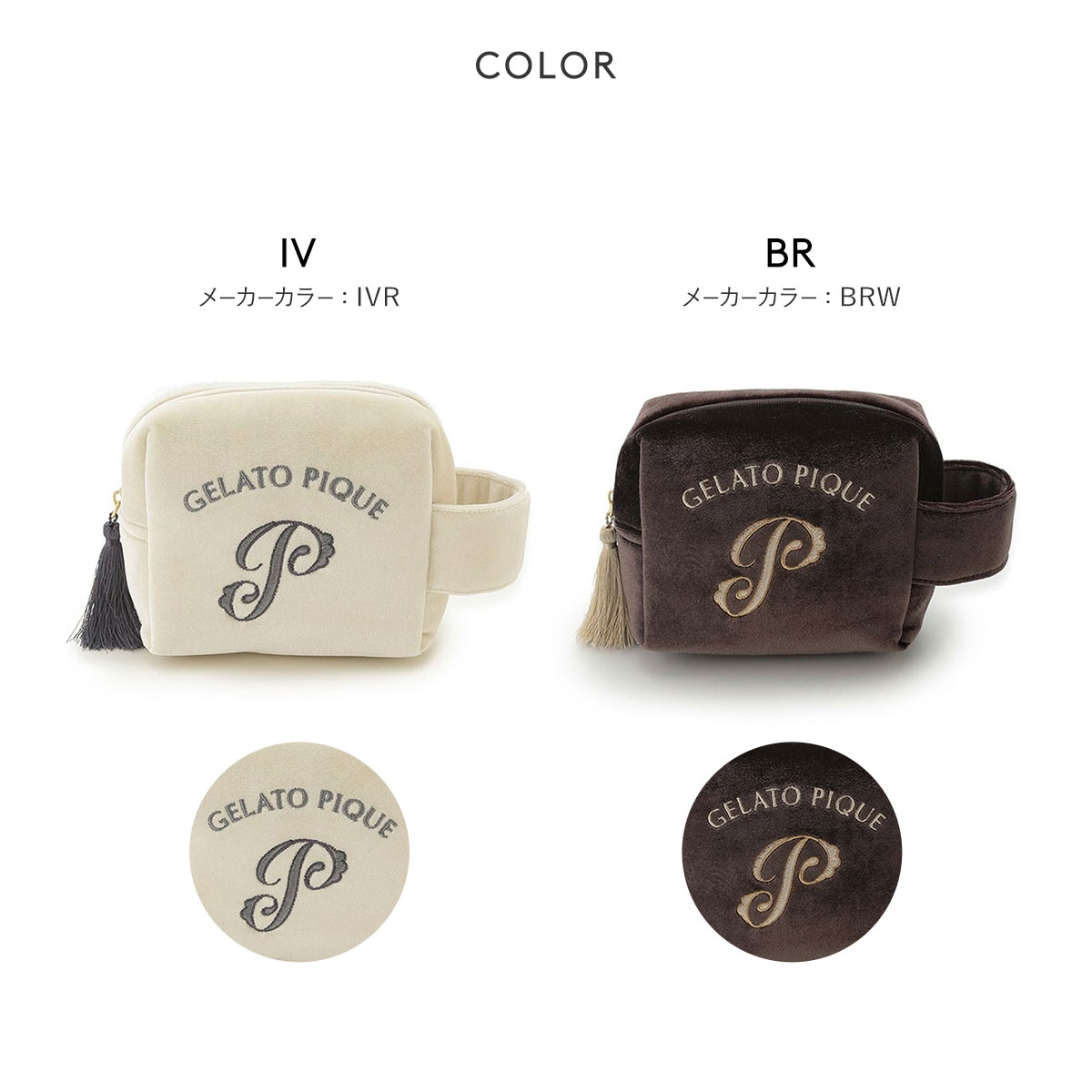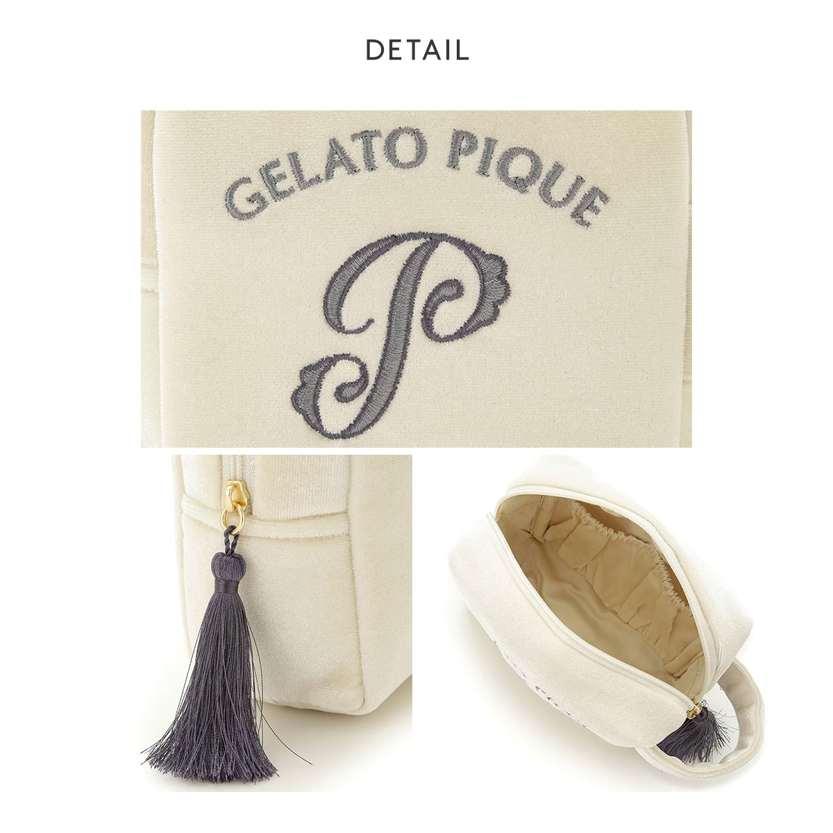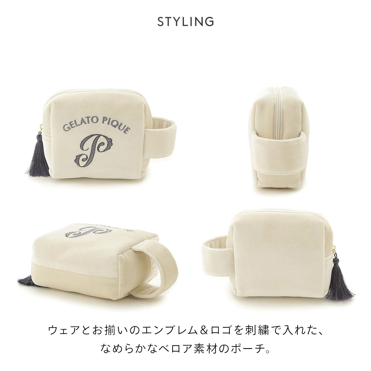 ジェラートピケ エンブレムモチーフベロアポーチ ジェラピケ gelato pique(IV-アイボリー-Free)