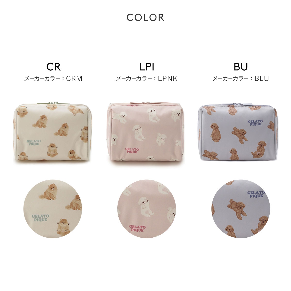 カラーCR-クリーム、LPI-薄ピンク、BU-ブルー
