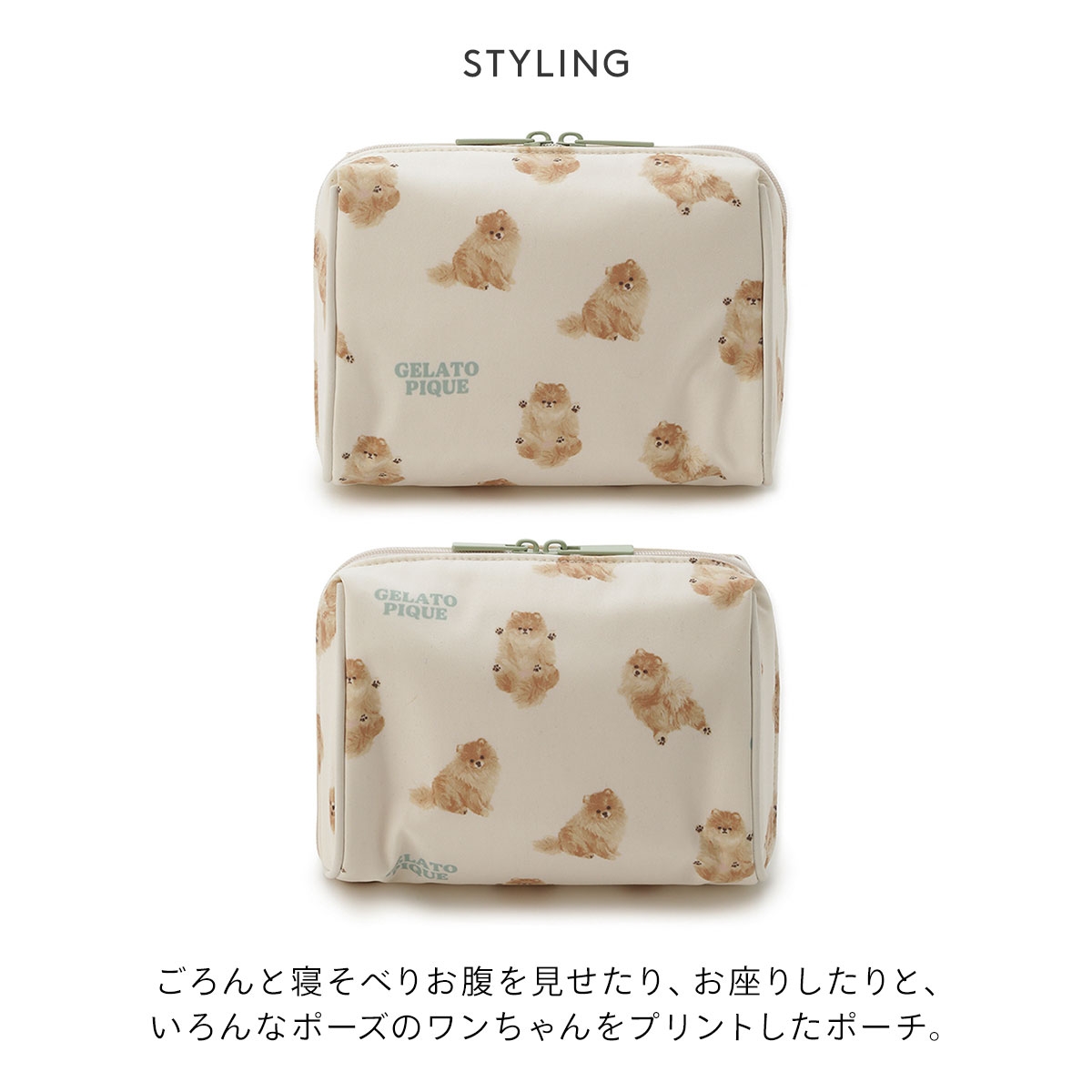ジェラートピケ ドッグ総柄ポーチ ジェラピケ gelato pique(CR-クリーム-Free)