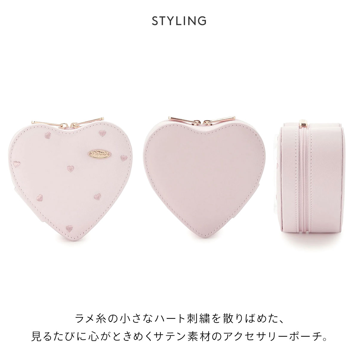 ジェラートピケ★ラメハート刺繍に心ときめくアクセサリーポーチ
