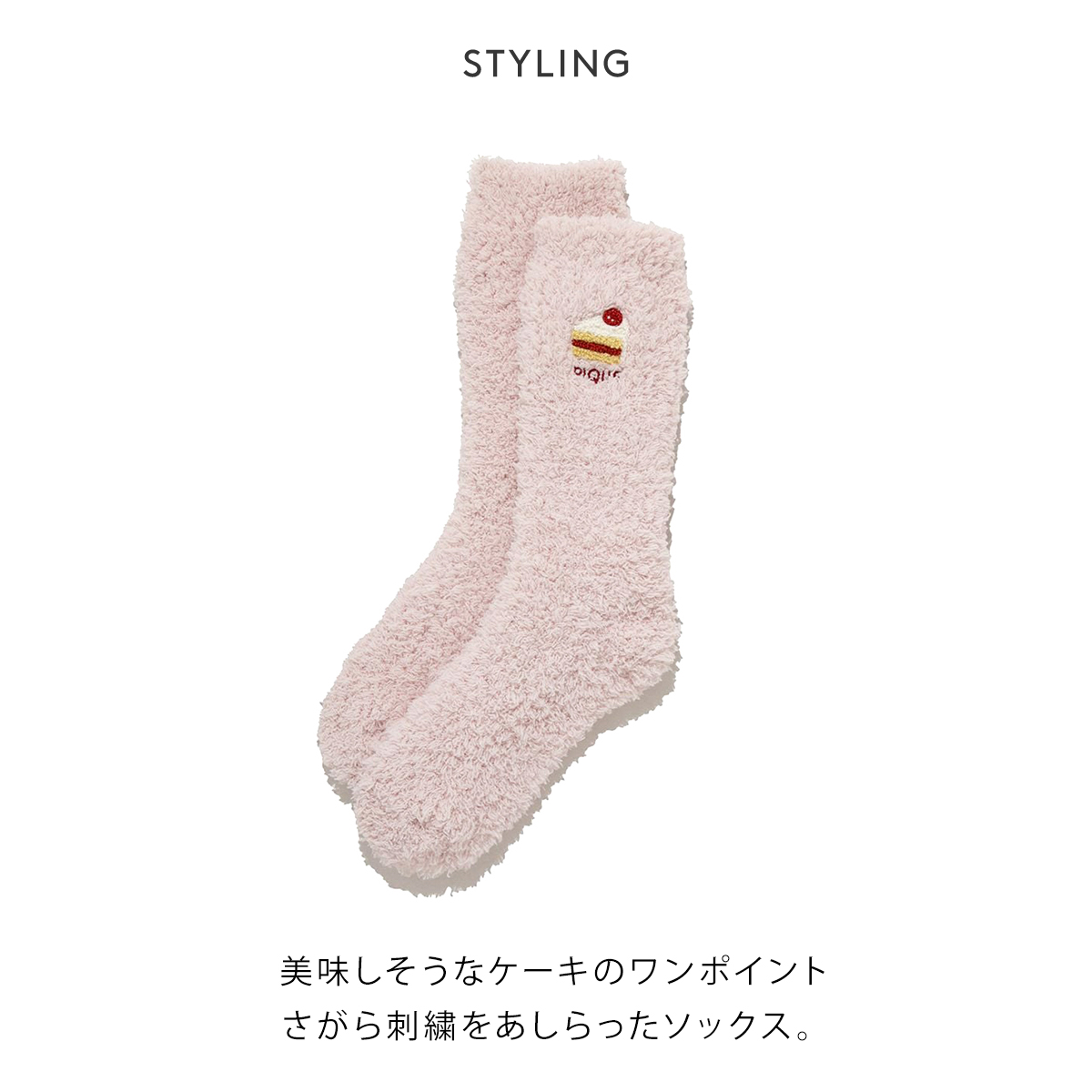 美味しそうなケーキのワンポイントさがら刺繍をあしらったソックス。